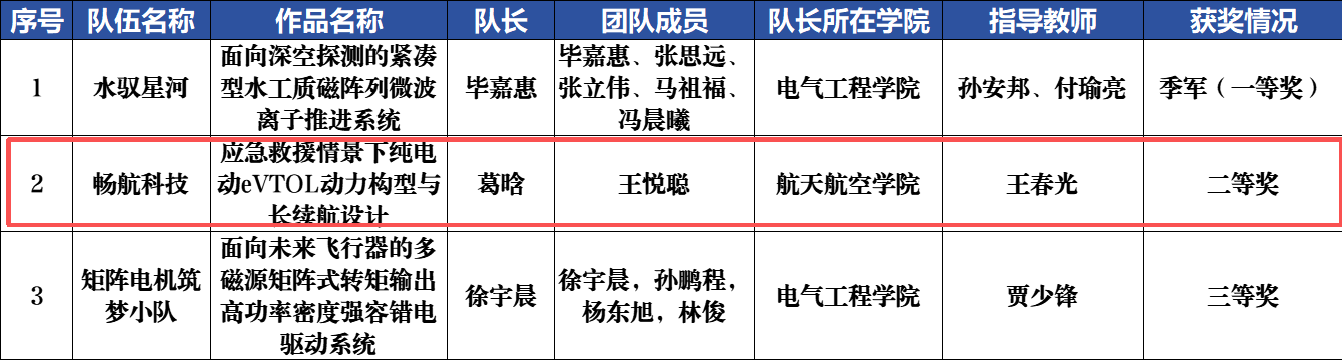 作品介绍:低空经济快速发展背景下,应急救援对高效灵活的空中装备需求迫切。然而现有eVTOL存在续航不足、环境适应性有限、安全性待提升等问题。为响应国家交通科技与应急救援发展号召,团队聚焦绿色高效救援需求,开展新型eVTOL研发。团队打造适配应急救援场景的新型eVTOL,创新动力布局,搭载智能控制技术,提高电池利用效率与空间适配性,实现各项功能平衡。该eVTOL兼具零排放、低噪音的绿色特性与高安全、强适配的作业能力,可快速响应复杂救援任务,为低空应急保障提供创新解决方案。