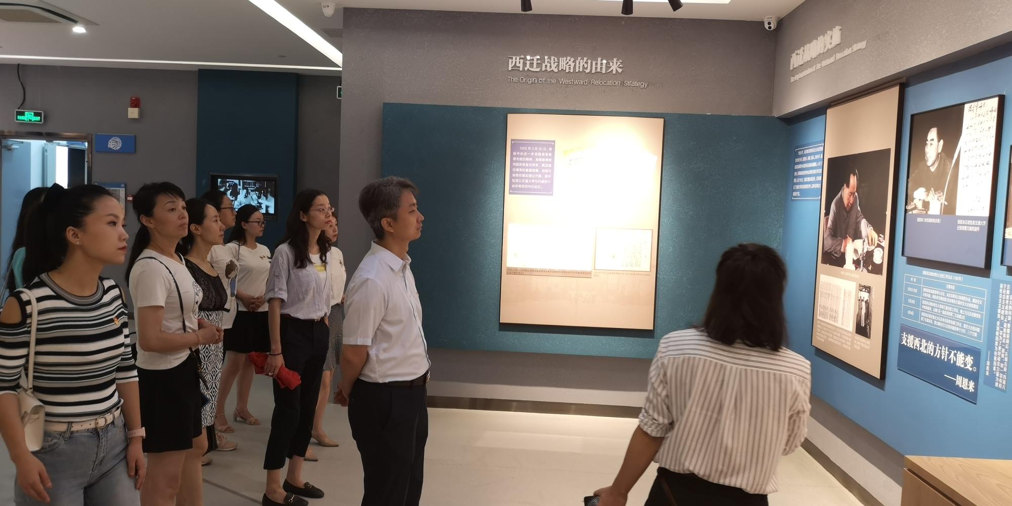 支部全体党员首先来到西迁博物馆,再次深入学习西迁精神。在讲解员的带领下,参观了“溯源”“西迁”“致远”三个展厅,观看了图片实物,重温了交通大学的办学历史,聆听了多个感人故事。交通大学西迁的成功,离不开党的领导和名师先贤的率先垂范,离不开西迁老教授们的无私奉献。正如习近平总书记2020年4月考察西安交大时所指出的,“交大人展现出的西迁精神,核心是爱国主义,精髓是听党指挥跟党走,真正的是与党和国家,与民族和人民同呼吸共命运。”