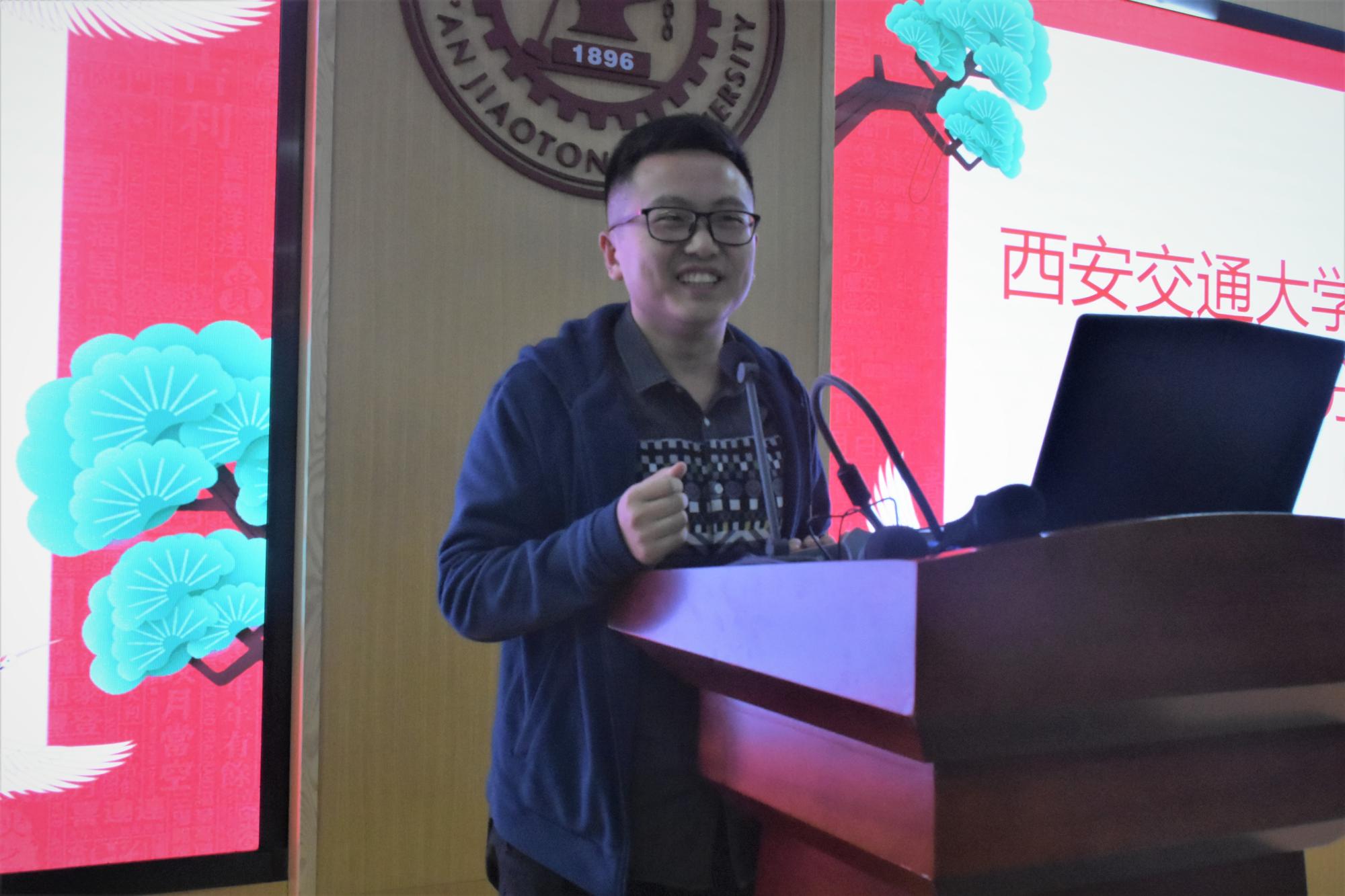 宋思扬回顾了本科到研究生阶段的求学经历,分享了期间遇到的踌躇、困难和挫折。他讲到。只有不断的总结和反思才能让自己更快的进步,这也是他在硕士、博士期间取得诸多成绩的根基所在。针对在场研究生的研究生生活他希望同学们早做规划、权衡兴趣、充实自己。只有用心去做,全心投入,坚持到最后往往定有意外的收获,定能见识到不一样的生活、体会不一样的人生。