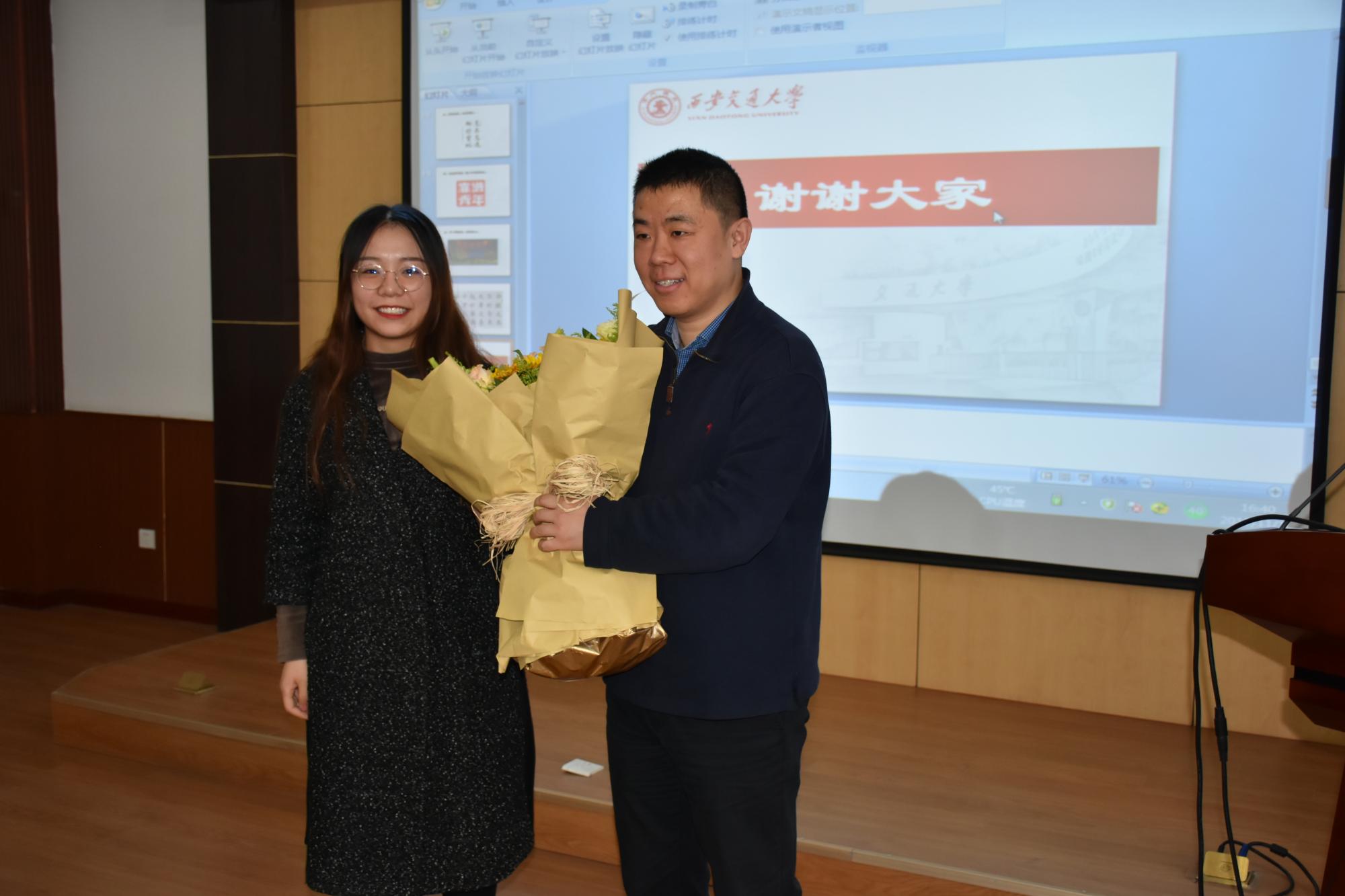 报告环节结束后,航天学院陈姣姣同学代表学院全体学生党员向张未展教授献花,表达感谢与敬意。
