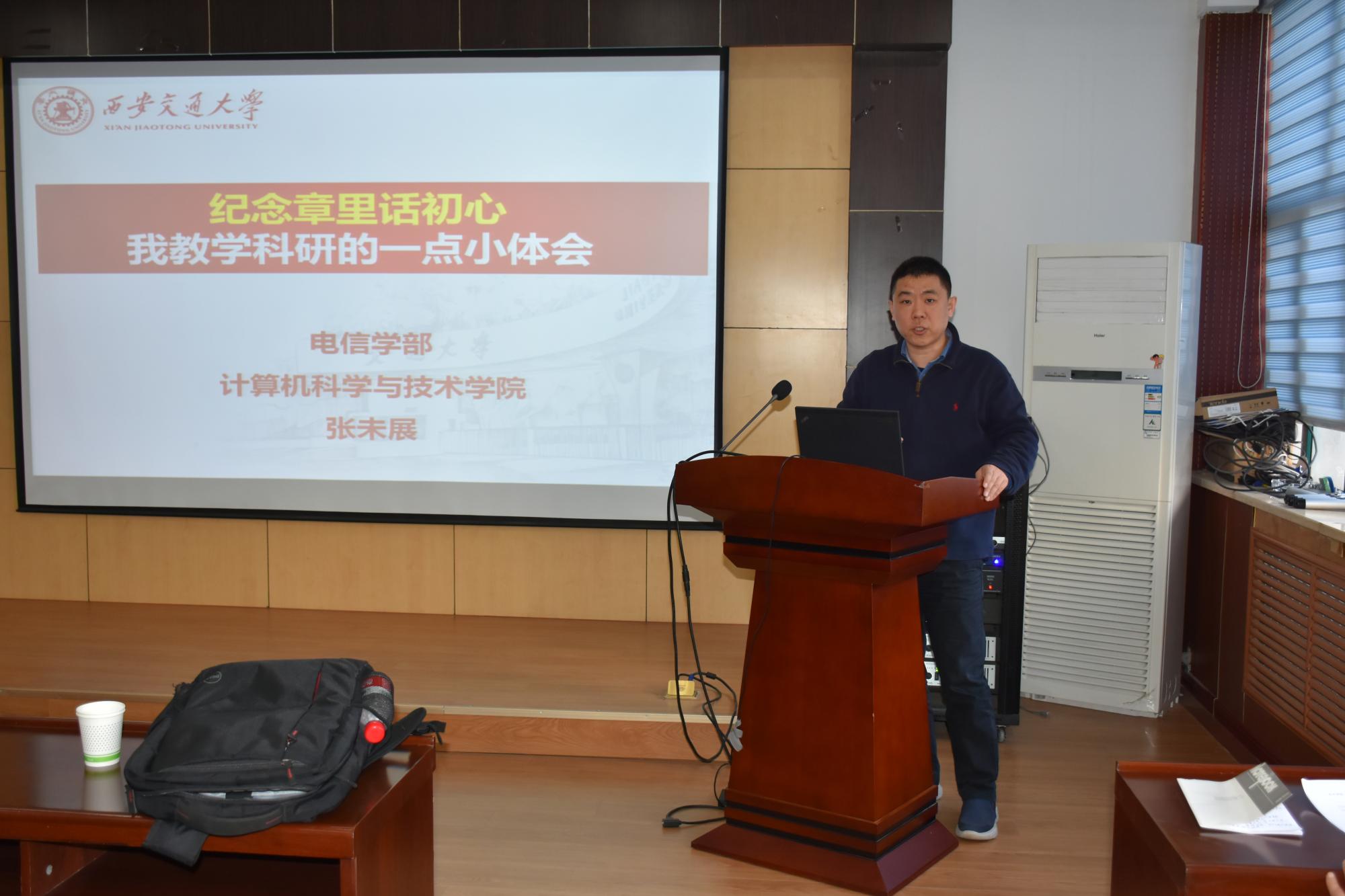 张未展教授向大家介绍了自己的求学经历和奋斗故事,分享了自己从事教学科研工作的心得体会,讲述了他对“初心”、“使命”的理解和认识。张未展教授谈到,作为一名教师,自己的初心就是要做一个负责任的老师,在课堂上投入充足的精力,认真负责的上好每节课,科研工作方面要做坚持“三个面向”,做有用、有价值的科研。他勉励同学们在学习、工作中要不忘初心,不要太功利,不要怕吃亏;要牢记使命,志存高远,脚踏实地;要养成好的习惯,把每一件小事尽力做到最好;面对竞争与压力要有一颗感恩、包容的心。张未展教授的语言亲切平实,但却饱含力量,让在座同学感受到了榜样的正能量。