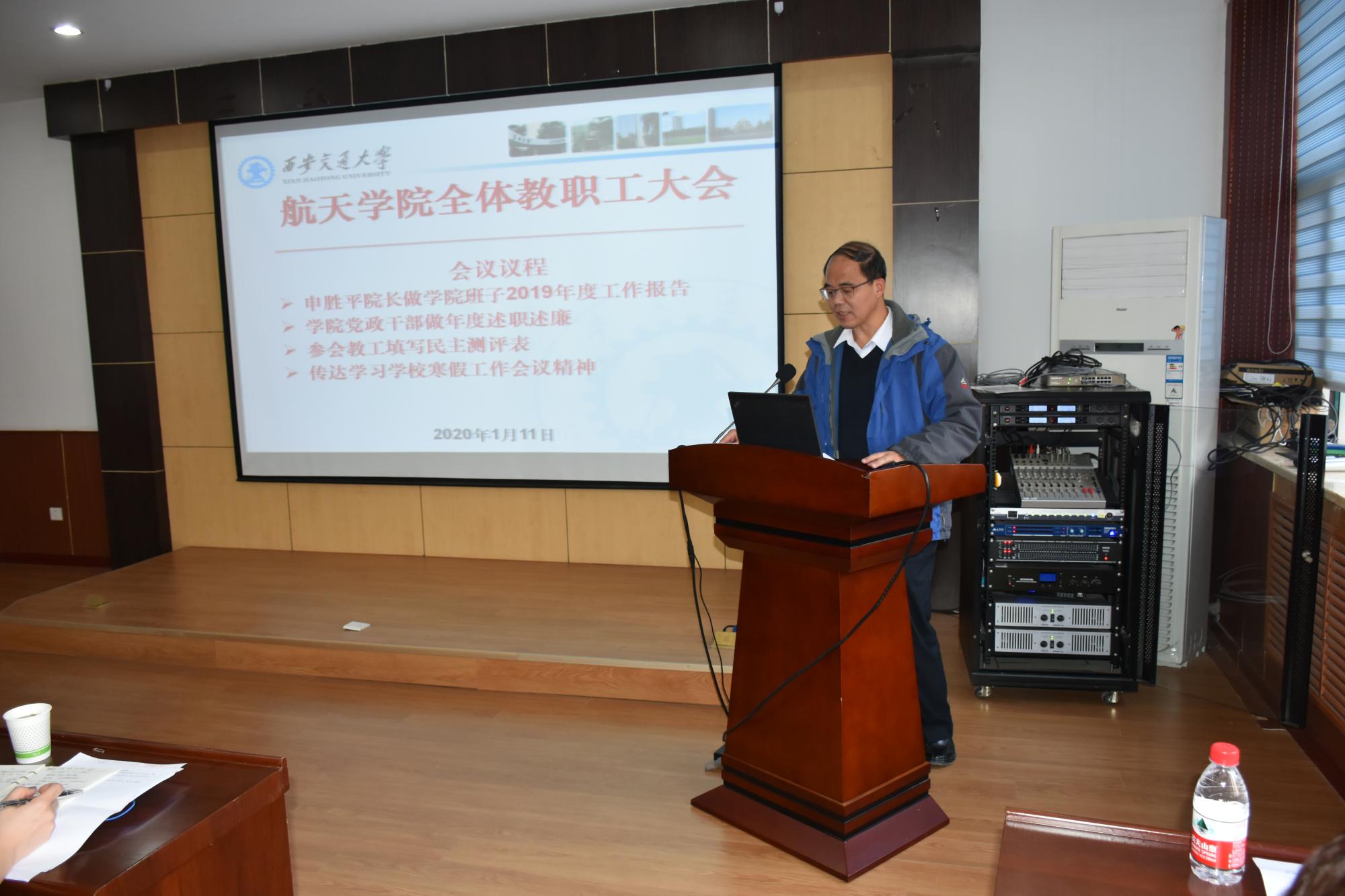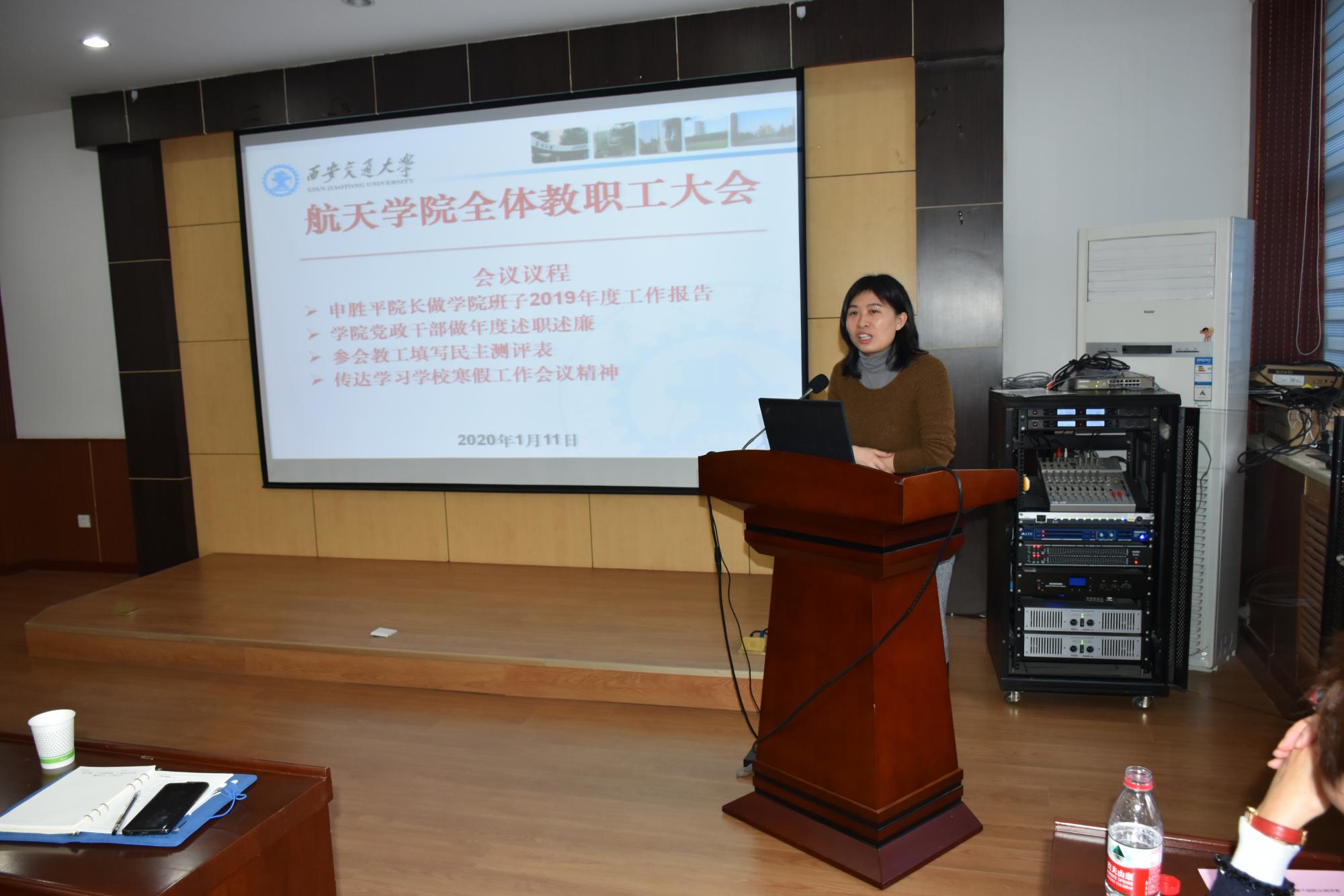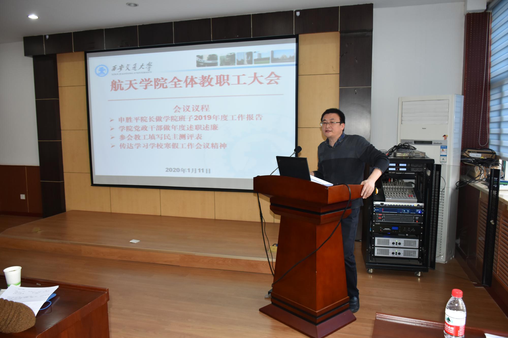 1月11日下午,航天学院召开全体教职工大会,传达学习学校寒假工作会议精神,开展学院党政班子和领导干部年度述职述廉工作。学院全体教工参加了此次大会。