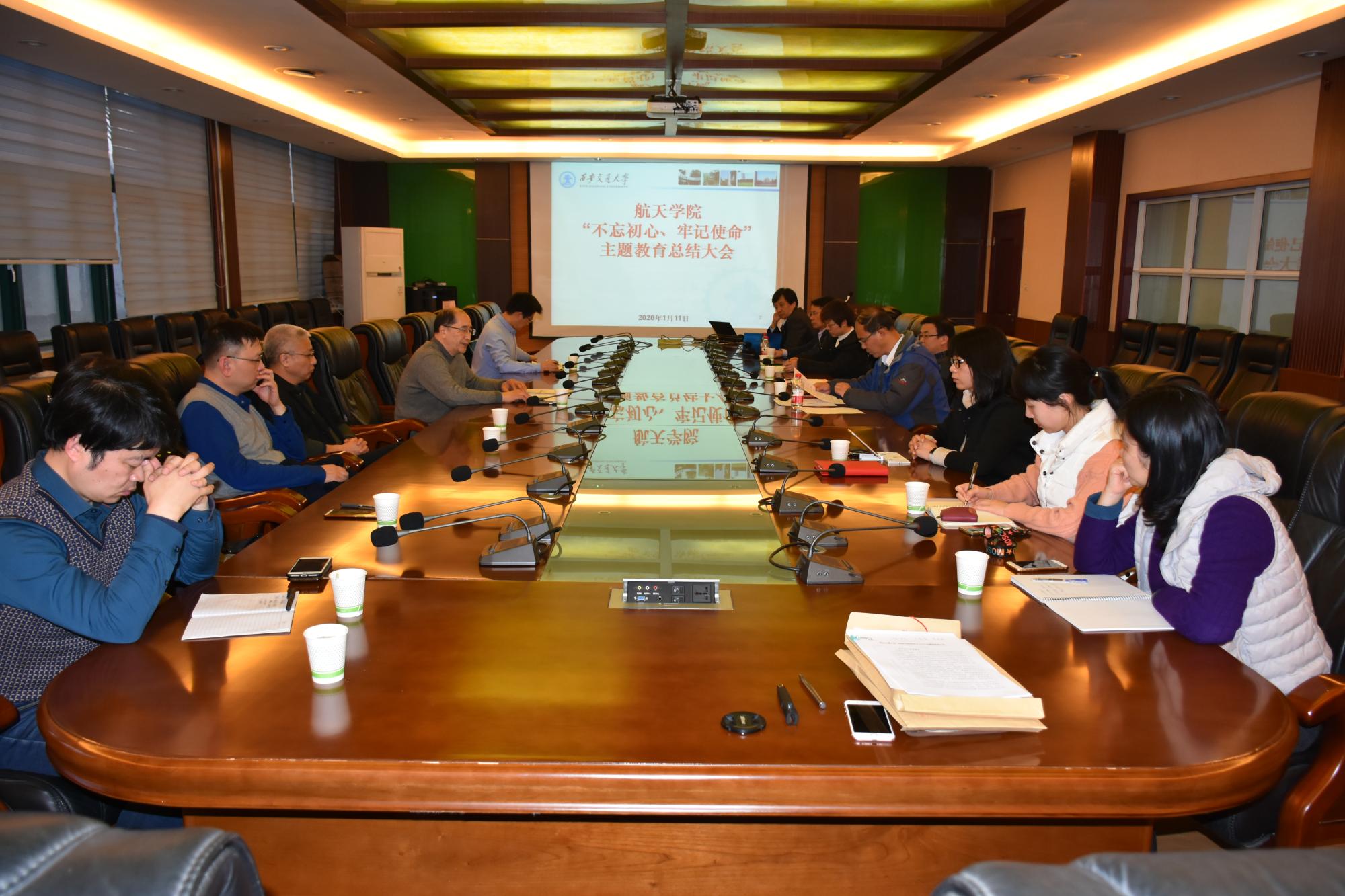 1月11日下午,航天学院召开“不忘初心、牢记使命”主题教育总结大会。主题教育第八指导组张庆林组长出席并指导会议。航天学院全体党政领导、党委委员、党支部书记参加了会议。航天学院徐自力书记主持了会议。