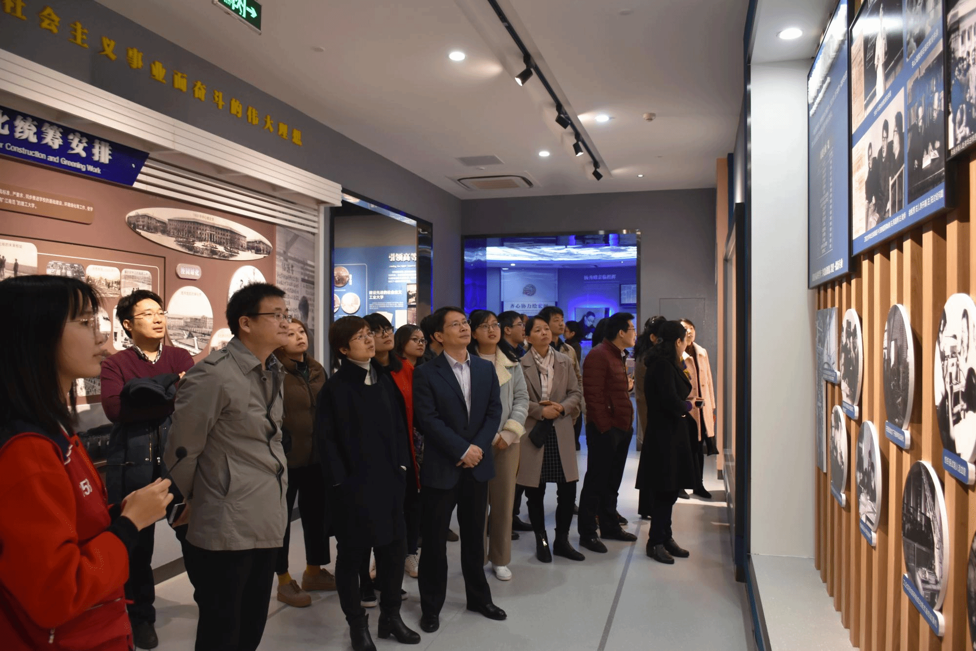 在志愿讲解员的带领下,老师们共同参观了“溯源”“西迁”“致远”三个展厅,观看了“弘扬爱国奋斗精神 建功立业新时代”西迁精神图片实物展中所陈列的的老照片、手稿讲义、西迁实物、沙盘等资料,再次学习了交通大学悠久的校史,聆听了感人的西迁故事。交通大学西迁的成功,离不开党的领导和名师先贤的率先垂范,离不开西迁老教授们的无私奉献。大家以“哪里有事业,哪里有爱,哪里就是家”的信念,以“打起背包就出发”的果敢,践行胸怀大局、建设西北的理想。