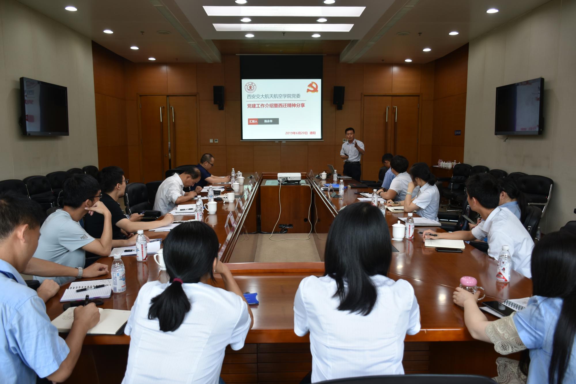 陈永华副书记介绍了航天学院党委组织架构、党建工作整体思路、党建工作开展情况和所取得的成绩,阐述了西安交大“西迁精神”的由来、内涵与意义,向与会人员讲述了“西迁精神”的代表人物及感人的西迁故事。