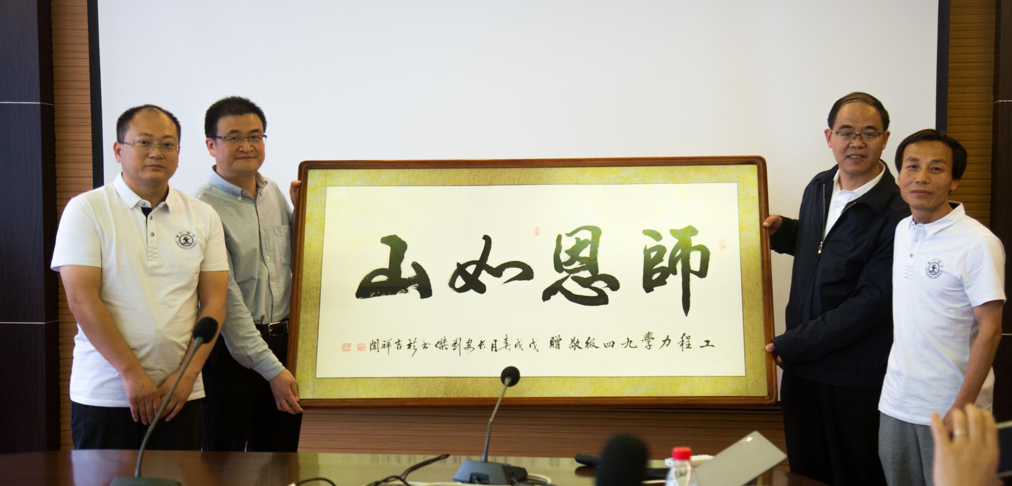 杰出校友代表、喜马拉雅FM总裁余建军校友分享了其创业的心路历程,杰出校友代表、浙江大学教授王杰校友分享了其最新科研成果,杰出校友代表、江淮专用车公司总经理魏中良校友被院聘为创新创业导师。随后,每位校友依次发言,抒发了对母校的思念之情、对老师的感激之情,以及对同窗的美好祝愿,为母校自豪,也为所取得的成就感恩。校友们纷纷表示,感谢学校学院为校友们提供相聚的机会,将继续关注和支持学校和学院的发展建设,争取为母校的“双一流”建设作出一份贡献,各位参会老师也回忆了当年的代课授课情景以及与同学们交往交流的点点滴滴。最后94级校友共同向学院赠送了刻有“师恩如山”字样的书法牌匾,寄托了校友们对母校的深切感恩之情。申胜平院长、徐自力书记代表学院对校友们的赠礼表示了感谢,并欢迎各位校友常回母校相聚。