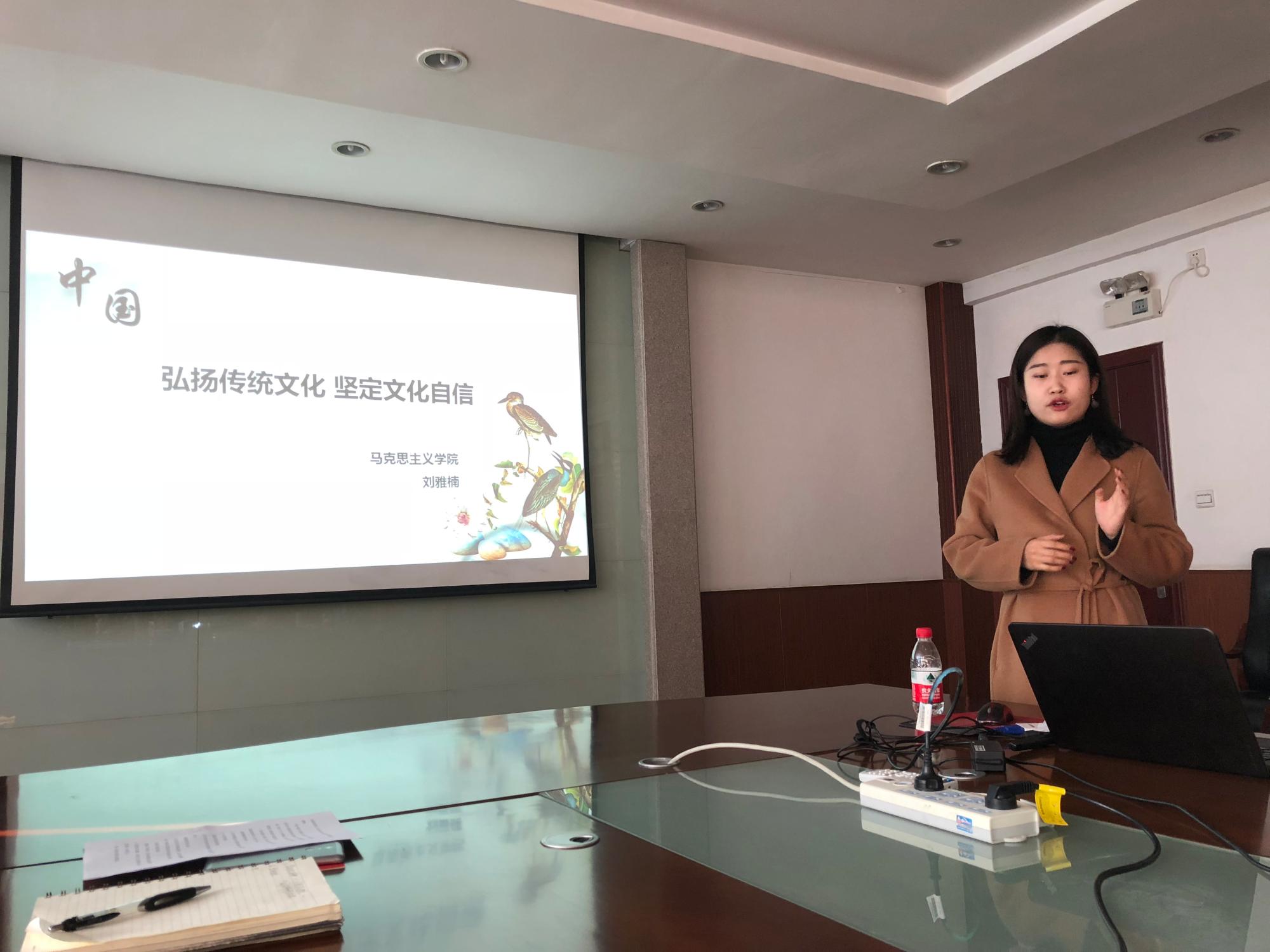在接下来的讨论环节中,支部成员纷纷发表自己的理解与感悟,王茗仕同志谈到“因为不自信,所以要创造自信。全世界唯有华夏文明的传承一直没有断,近期习近平总书记邀请特朗普参观故宫,就是为了展示中国悠久的优秀传统文化”。刘冉同志认为如今传统文化的传承受到冲击,我们应该“拾”起来,并且传递到下一代。王桂林、王标、胡建英,赵婧等同志也纷纷就宣讲员的三个主题发表了意见。
