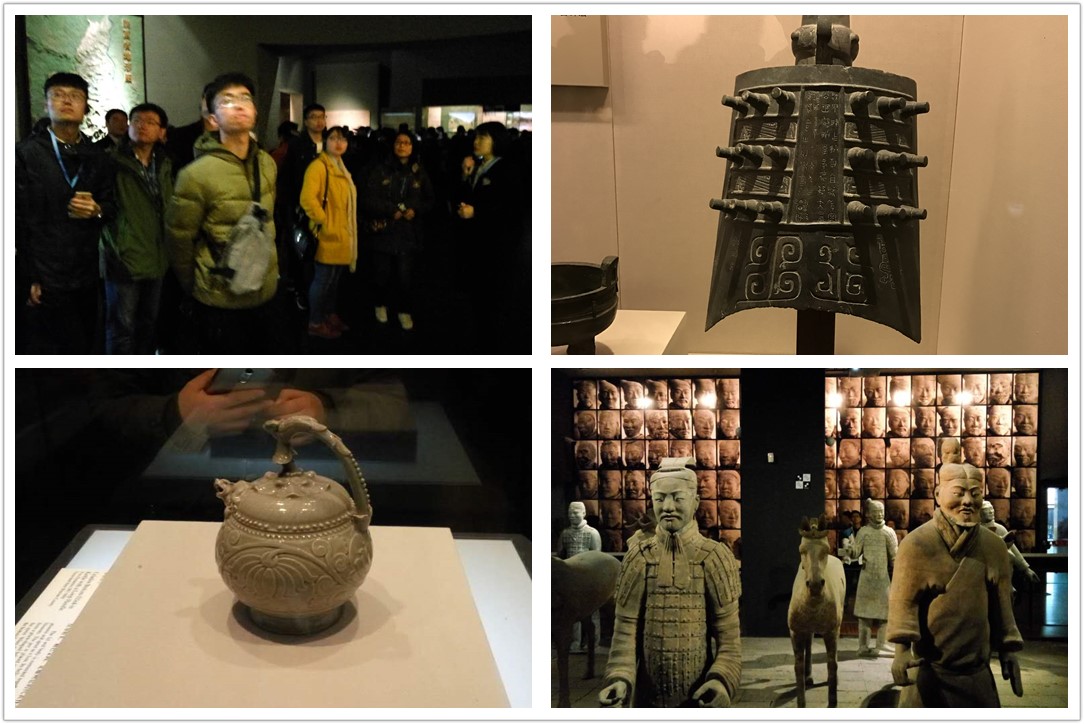 陕西历史博物馆以其丰富的文物藏品成为展示陕西历史文化和中国古代文明的殿堂,被誉为“古都明珠,华夏宝库”。在一个多小时的参观学习中,同学们在讲解员的带领下依次参观了三个展厅。第一展厅主要介绍史前时期到周秦的历史发展。琳琅满目的文物,再现西周王都风采,兵马俑和铜车马更让大家感受到秦朝 “一统天下”东方帝国的磅礴大气。第二和第三展厅分别展出了汉朝、魏晋南北朝时期的出土文物和隋唐以后的陕西出土文物。
