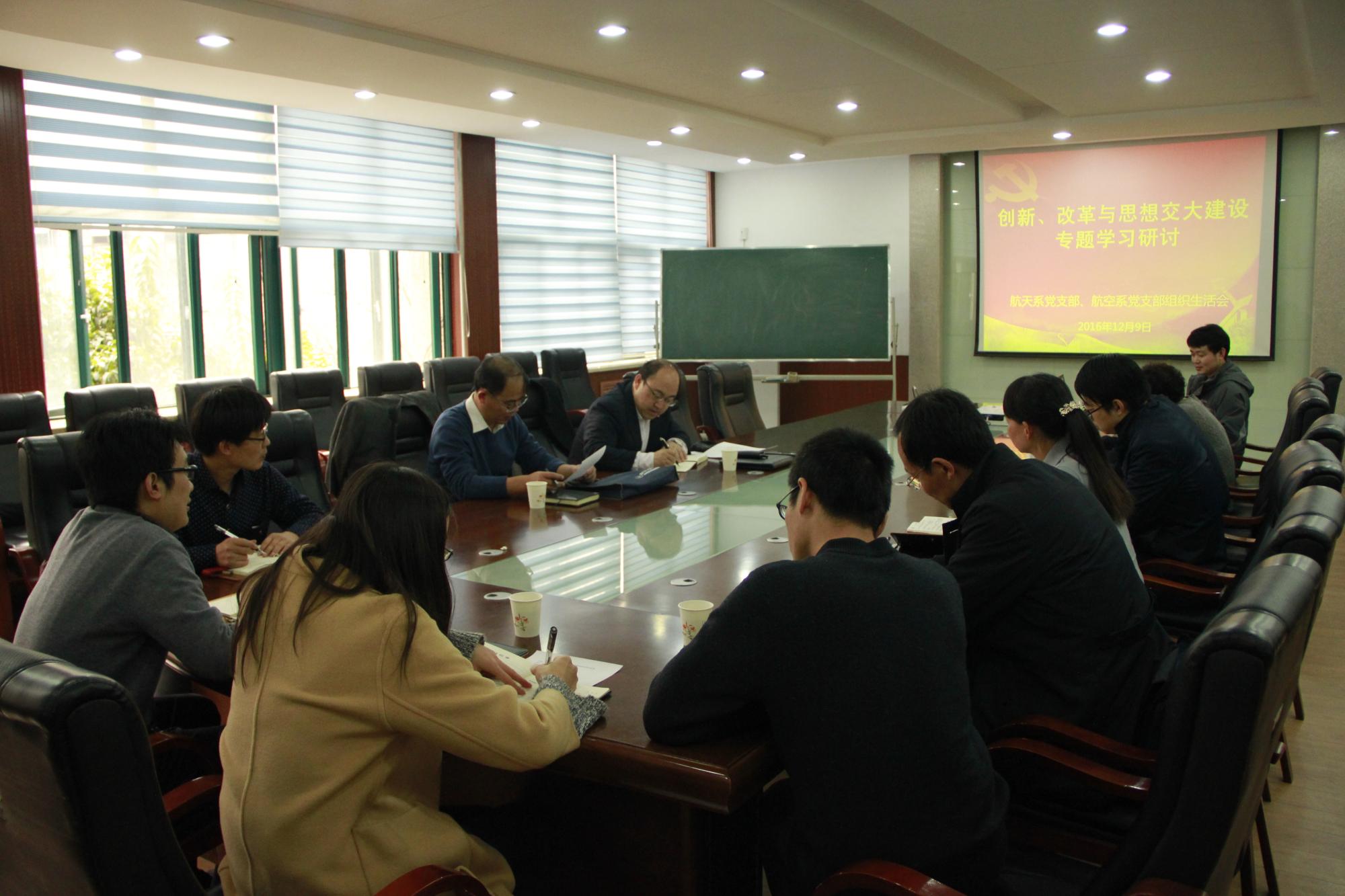 12月9日下午,航天学院航天工程系党支部、航空工程系党支部组织开展了“创新、改革与思想交大建设”专题研讨会。支部10余位党员同志参加了研讨。校党委副书记宫辉出席会议,航天学院党委副书记(主持工作)徐自力、副书记陈永华列席会议。会议由航天工程系党支部书记董龙雷主持。