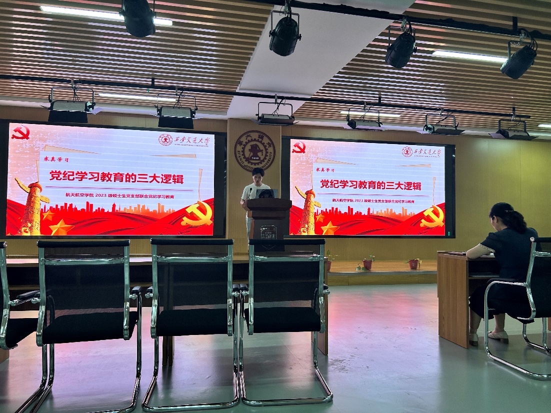在全面从严治党的大背景下,为深化航天学院学生党员的对党纪的认识,提高党员的政治素养和纪律观念,在航天学院党委的倡导和组织下,6月27日下午,航天学院2023级硕士生第一、二、三党支部于2-4197联合开展党纪学习教育联学共建活动。航天学院党委委员张亚红教授出席会议,各支部党员、预备党员、积极分子及指导教师近100人参加。第三党支部张圆源同志主持会议。