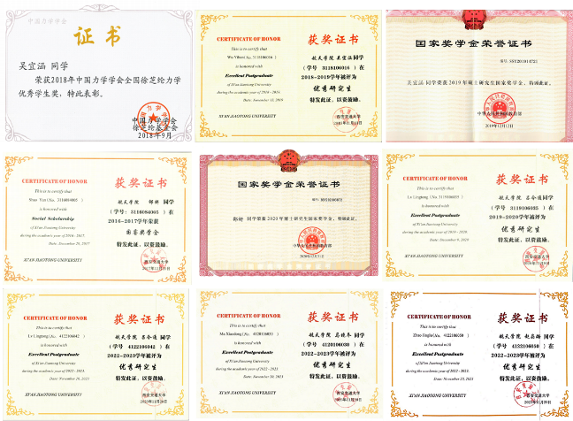 此外,支部成员参与国家重大科研项目1项,各类奖学金、表彰奖励共计12人次,支部成员吴宜涵、邵妍获国家奖学金,吴宜涵获中国力学学会全国徐芝纶力学优秀学生奖、中国航天基金会-启明航天三等奖学金,邵妍获国睿奖学金、中国航天罗麦科技一等奖学金、中国航天基金会-启明航天一等奖学金,马晓东获航天基金会-启明二等奖学金,吕令通获沈亚鹏教育发展基金奖学金,赵晶璐、刘霖等8位成员获soul
