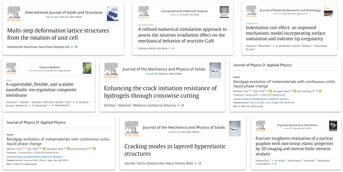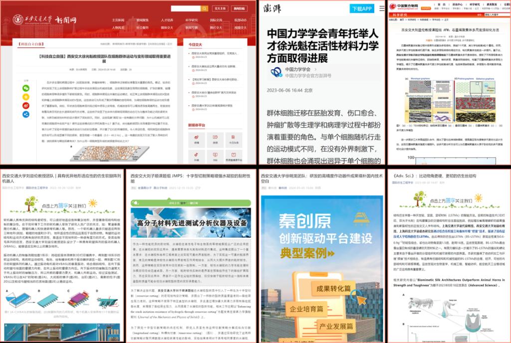 博士生力学第五党支部紧扣时代发展脉搏,攻坚卡脖子问题,积极响应国家重大需求的号召,表现出青年学子的时代担当。支部成员吕令通、赵晶璐在申胜平教授指导下参与高温热防护材料的研发,助力“国之重器”穿上“防火服”,其为交大历史上第五个、航院首个国自然重大项目。支部成员邵妍、谭楷所在徐明龙教授团队研发的高精度作动器件成果成为秦创原创新驱动平台建设典型案例,填补了国内相关领域的空白。支部成员殷旭、史之君在徐光魁教授指导下在多尺度力学-医学交叉领域致力于研究细胞群体运动与变形机制,助力为解决生命健康领域的关键基础问题提供理论依据,支部成员陆文静在刘子顺教授的指导下参与水凝胶等软物质材料的研发,助力软物质材料在柔性电子和生物医药等领域广泛的应用,相关工作发表在力学领域顶级期刊JMPS上。支部成员刘会超、李玉书、林万青在刘益伦教授指导下参与石墨烯二维材料与仿生软体机器人等领域研究,助力先进材料智能化设计与多尺度与医工交叉发展。支部各位成员均在自己研究领域脚踏实地,攻坚克难,将自己的研究同国家的发展同呼吸、共命运,向国家交出属于交大学子的一份满意答卷。