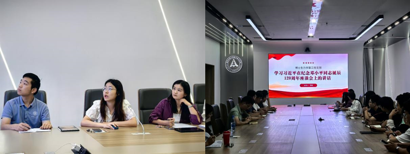 会议第二项,博士生力学第三党支部书记李敏领学“习近平总书记在纪念邓小平同志诞辰120周年座谈会上的讲话”。李敏全面梳理了讲话的逻辑脉络,逐段逐句、原原本本地带领与会人员进行了学习探讨,领悟讲话精神。
