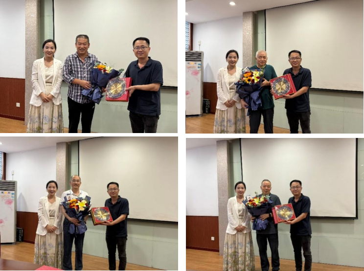 活动第二项,李昱静与郁汶山共同为退休教师颁发定制纪念品并献上鲜花——每一份礼物都承载着学院与力学示范中心对退休教师的深切感激,每一束鲜花都传递着对他们过往付出的敬意与未来生活的美好祝福。随后,退休教师们在纪念留言册上挥毫寄语,字里行间满是对学院与中心未来发展的期许,更饱含对青年教师传承教育初心、勇担育人使命的殷切嘱托。