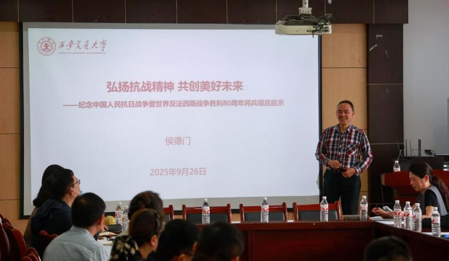 侯德门作了题为《弘扬抗战精神,共创美好未来》的专题报告。他结合丰富史料,深刻阐释了抗战精神的内涵与时代价值,深情回顾了交大力学与航空宇航科学与技术学科以及国家重点实验室的艰辛建设历程,引发全场共鸣。他强调,在新时代的科研攻关与重大任务中,继承发扬“天下兴亡、匹夫有责”的爱国情怀具有重要现实意义,鼓励大家将精神力量转化为攻坚克难、勇攀高峰的实际行动,为国家战略科技力量提升贡献力量。