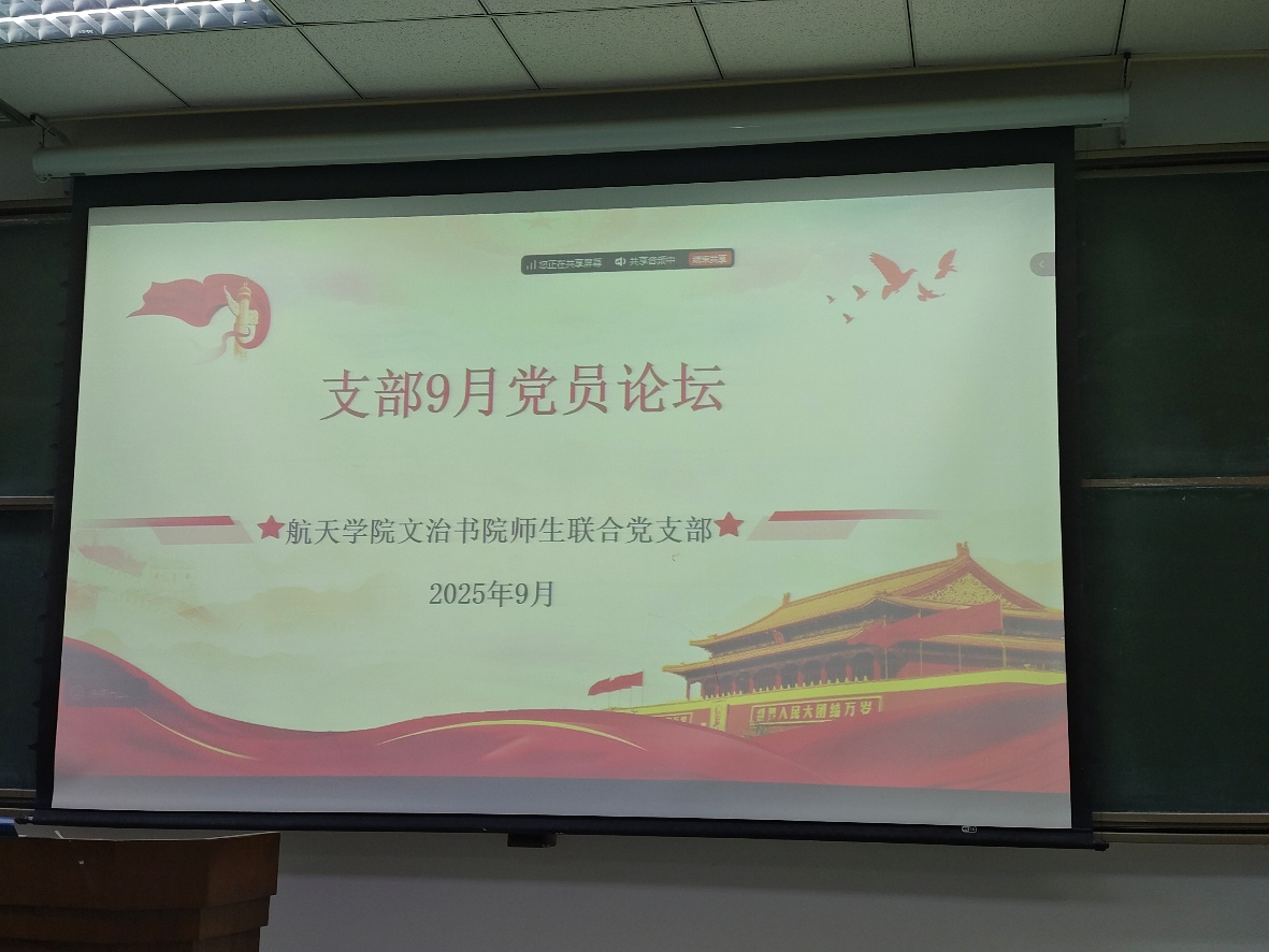 为深入学习贯彻习近平新时代中国特色社会主义思想,深化党史学习教育成果,引导支部党员从历史中汲取智慧和力量,近日,航天学院文治书院师生联合党支部成功举办党员论坛。本次论坛以“铭记历史、开创未来”为核心,通过主题学习汇报与集体观看视频相结合的形式,带领支部成员深刻领会习近平总书记重要讲话精神,进一步坚定理想信念,激发爱国热情与奋斗精神。