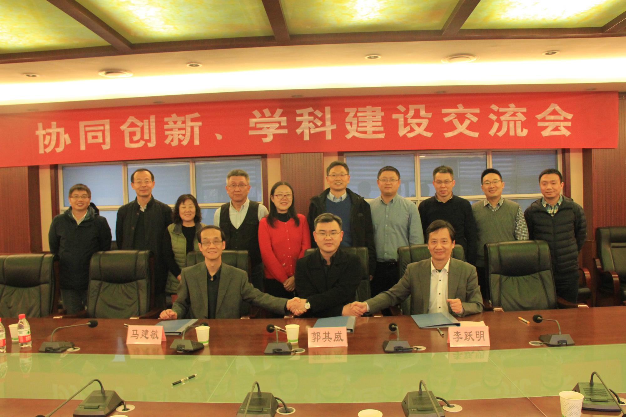 交流会上三方还共同签署了院所人才培养、学科建设协同创新备忘录,并合影留念。