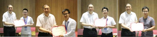 吁鹏飞同学,清华大学李国洋同学,浙江大学周伟建同学和大连理工大学薛日野同学。杨卫院士为四位同学颁发获奖证书。