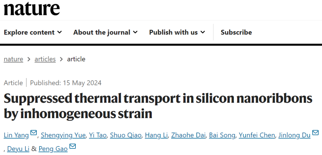 通过开发跨微米-原子尺度的实验表征技术,并结合第一性原理的理论模拟,该工作为长期以来有关非均匀应变对声子传输影响的难题提供了关键线索。因此,这项研究不仅清楚地揭示了非均匀应变对固体导热的调制机理,而且为基于应变工程的功能性器件的创新设计提供了重要思路。例如,基于应变梯度引起的晶格热导率降低,与此前已证明的载流子迁移率增强之间的协同作用,为开发高性能的热电转换器件提供一种新颖策略。此外,基于非均匀应变调制热导率可实现功能性热开关器件,用于动态控制热通量。论文合作者包括东南大学陈云飞课题组、北京大学戴兆贺课题组、北京大学宋柏课题组和美国范德堡大学Deyu Li课题组。