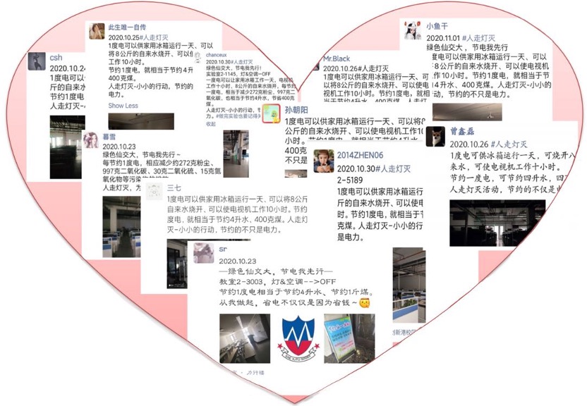 此外,为弘扬节约用电的理念,培养绿色发展的意识,同学们还通过在朋友圈内坚持打卡的方式,动员身边的每一位同学、家人以及朋友:关注身边的点点滴滴,在辛勤科研的同时也要节约用电。