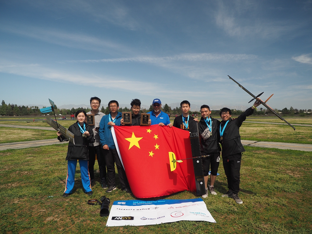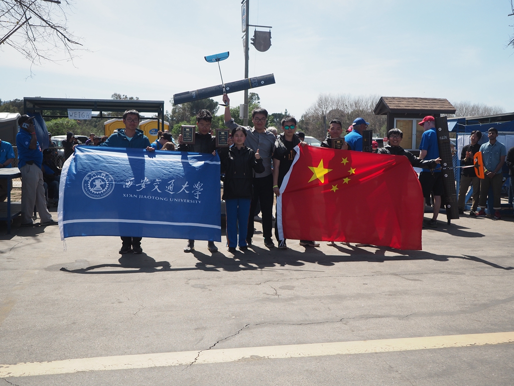 4月3日至10日,西安交大学生航模队参加了在美国洛杉矶举办的2018SAE国际航空设计大赛(SAE International Aero Design West),与美国加州大学伯克利分校、英国思克莱德大学、加拿大女王大学、波兰华沙理工大学和日本金泽大学等9个国家的56支大学代表队展开激烈角逐。经过设计报告评审、现场答辩、飞行比赛等环节的激烈比拼,交大航模队最终获得微型组别设计答辩环节、载重量2项单项冠军,并首次以总分第一的成绩勇夺世界总冠军殊荣,以优异的成绩献礼交大校庆,让鲜艳的五星红旗高举在航模届国际顶尖赛事的领奖台上。
