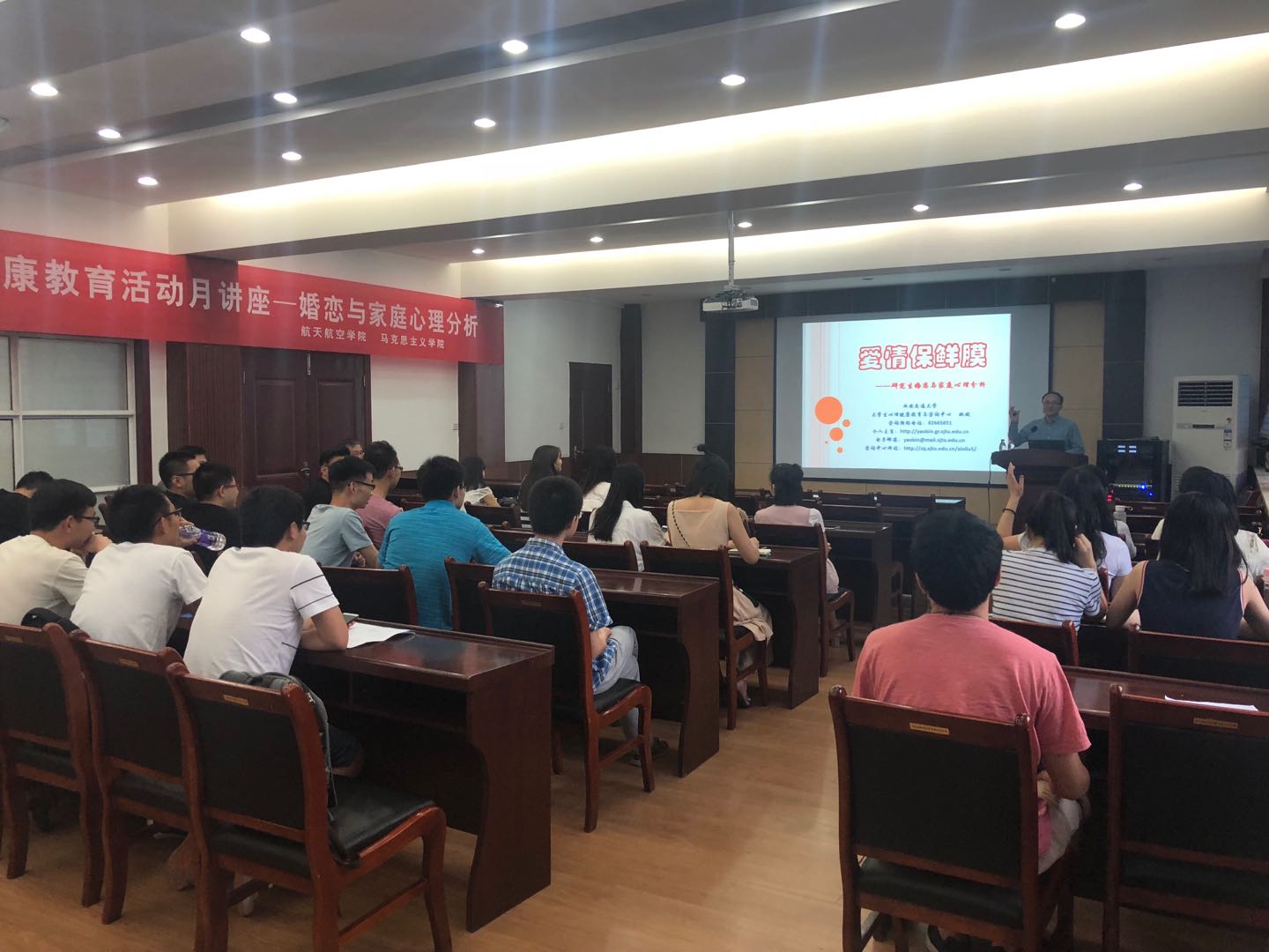 与马克思主义学院联合邀请大学生心理健康教育与咨询中心姚斌主任在航天学院第五会议室为研究生开展心理健康讲座。此次讲座以“爱情保鲜膜——研究生婚恋与家庭心理分析”为主题,由 soul