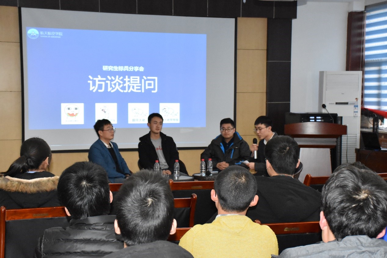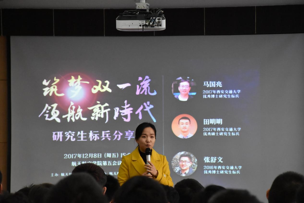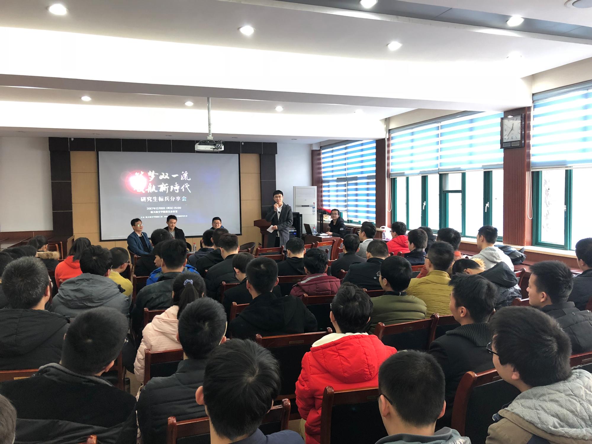 12月8日下午,“筑梦双一流,领航新时代”优秀研究生标兵分享会在航天学院教一楼第五会议室举行。本次分享会邀请到2017年度优秀研究生标兵获得者、航空宇航专业博士马国亮,2017年度优秀研究生标兵获得者、航空宇航专业硕士田明明,2016年优秀研究生标兵、航空宇航专业博士张舒文三位同学为大家分享成功经验。出席本次活动的有研究生辅导员李昱静老师、2017级博士、2016级硕士以及2017级硕士,分享会由2016级硕士范永晨主持。