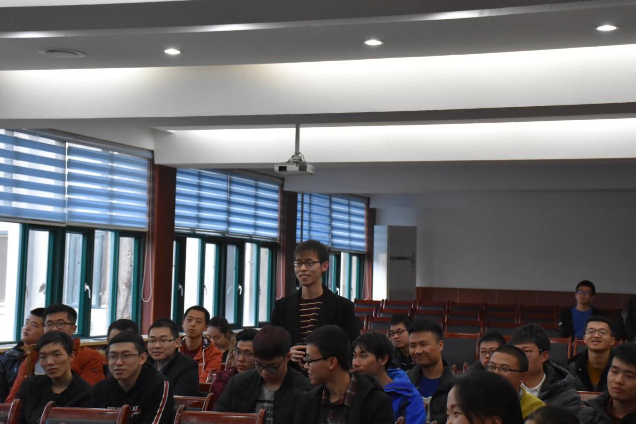 随后三位分享嘉宾分别作了简短的报告,讲述他们在科研、学习生活中的成绩与体会。马国亮重点讲述了自己的科研经历,同时为大家分享了科研以外的学生工作经历等;田明明从做好计划、正视问题和善于记录总结三方面阐述了自己的科研新的,重点介绍了自己参加学科竞赛的丰富经历和心得体会;张舒文介绍了自己的科研情况,并从学什么、时间规划、思维方式、科研态度等几个方面为大家讲述了自己在科研生活中的经验及体会。