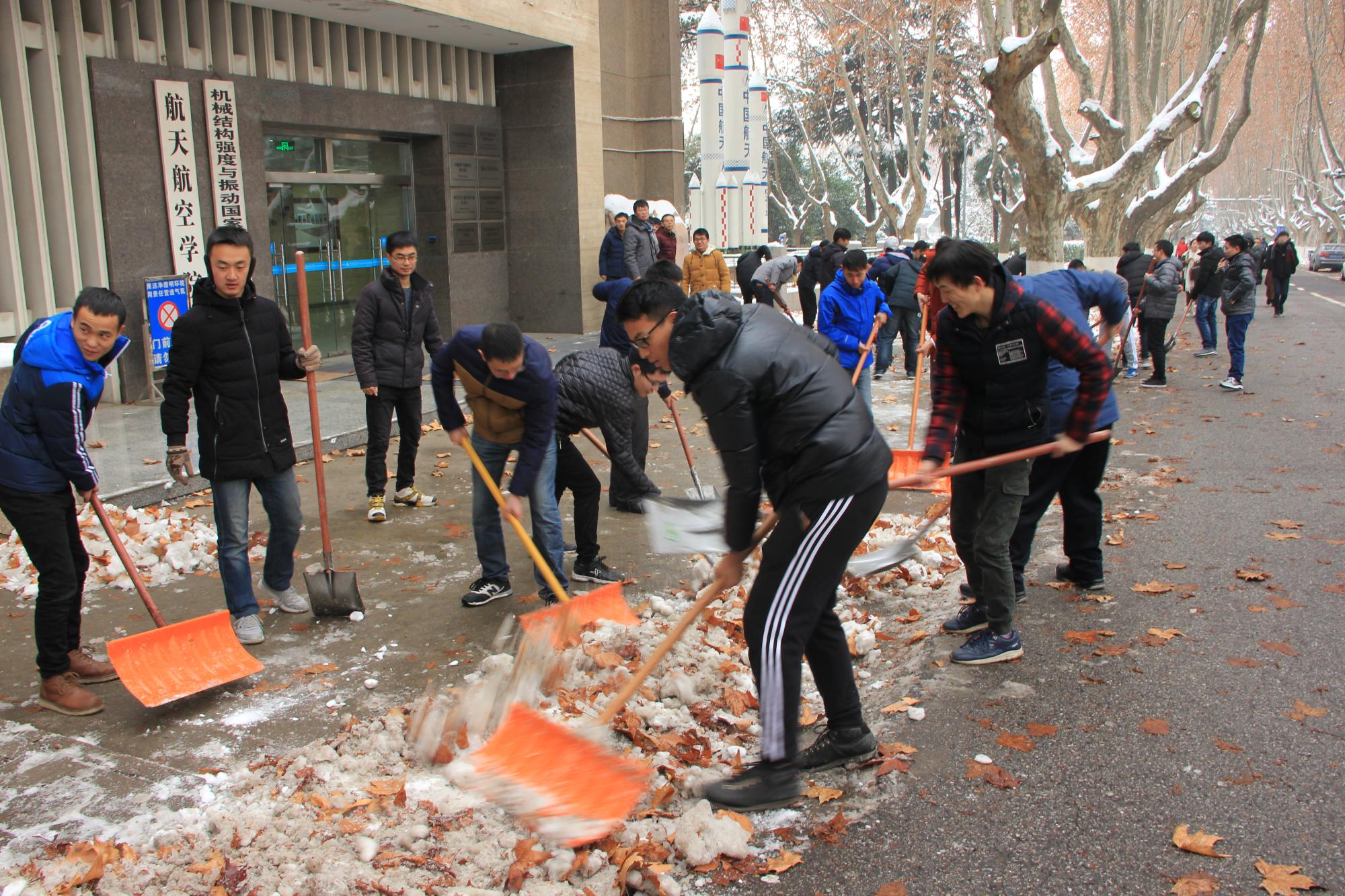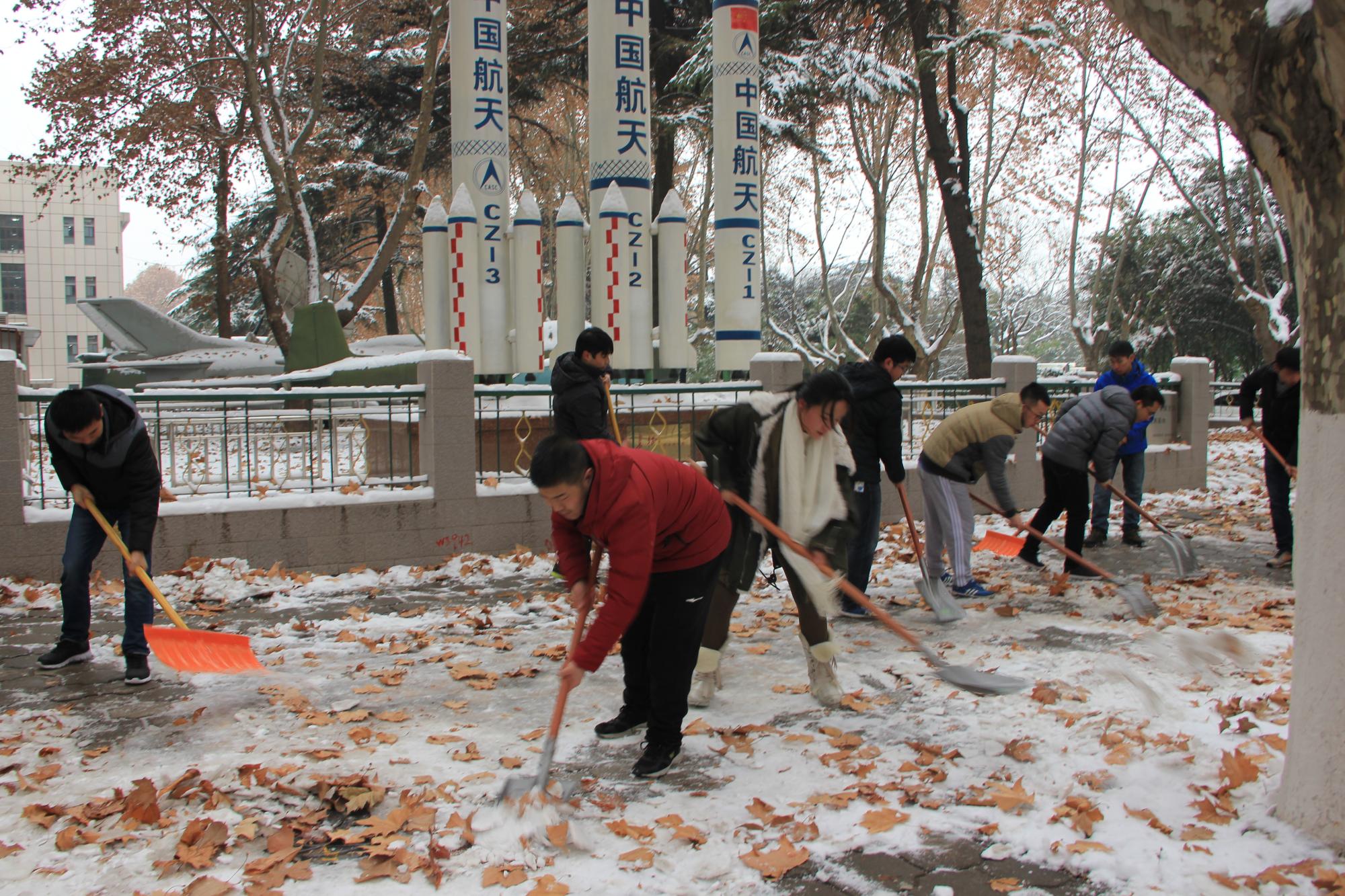 1月5日下午,航天学院分党委组织研究生党员对学院楼宇周围人行道上的积雪进行了清扫。学院陈永华副书记带领大家齐动手,美化校园环境,方便师生出行,从扫雪这样身边的小事做起,传递正能量,争做“西迁精神”新传人。