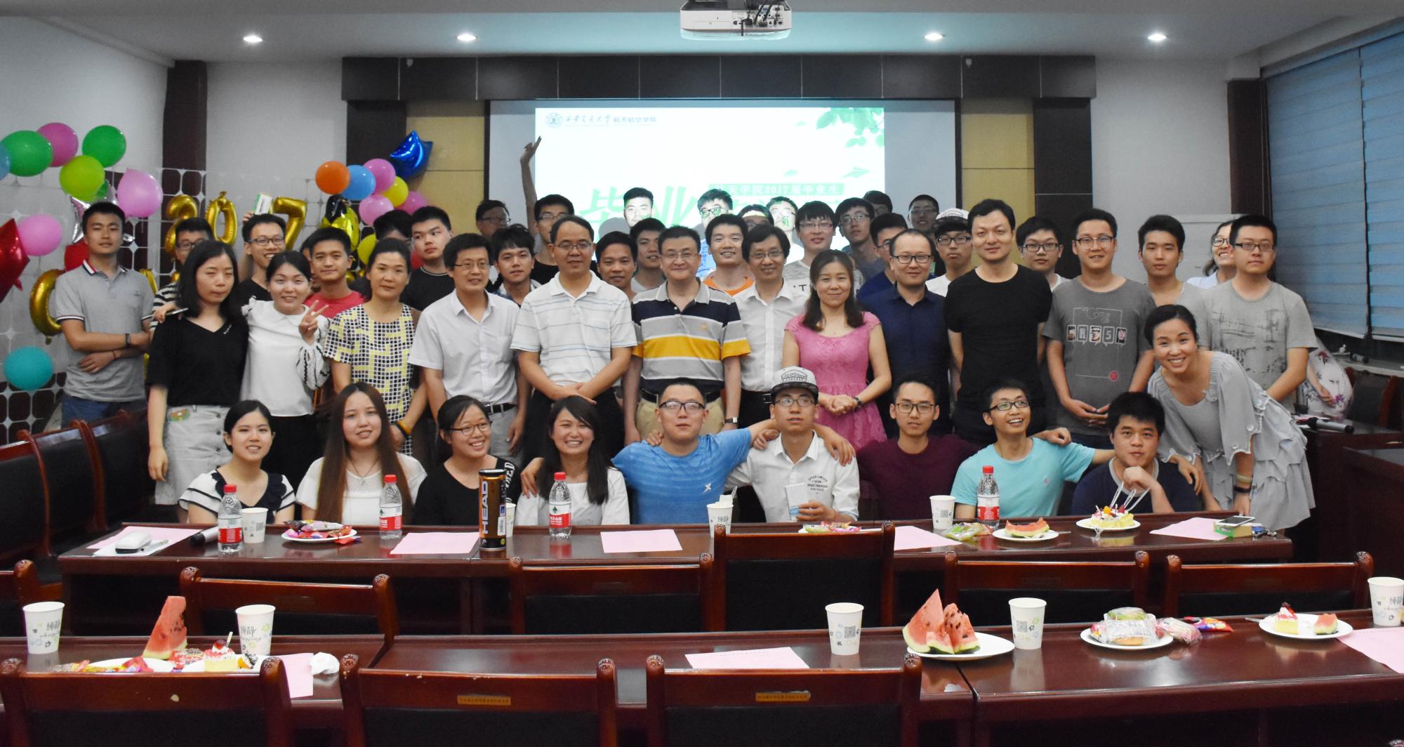 6月20日晚,航天学院为即将离校的2017届毕业生举办了毕业茶话会,莅临此次茶话会的领导有院长申胜平教授,党委书记徐自力教授,副院长李跃明教授,副院长吴莹教授,副书记陈永华副教授,文治书院郭小平老师以及毕业班的班主任老师。