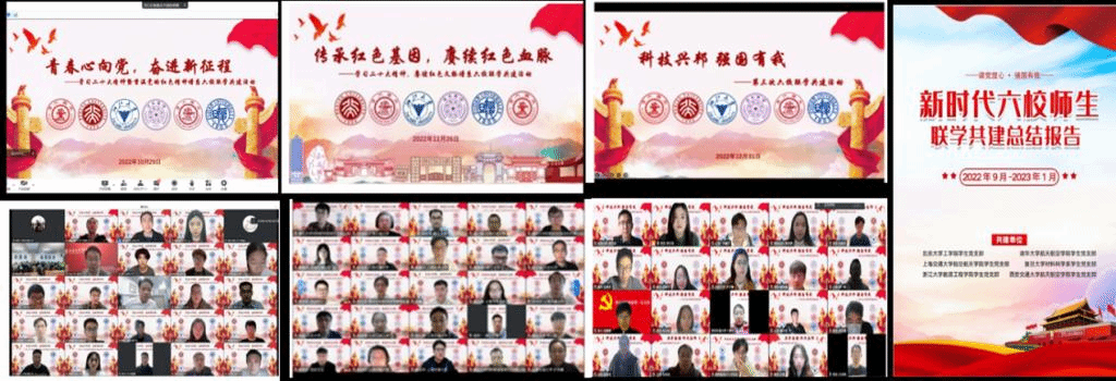 为深入学习贯彻党的二十大精神,赓续百年红色文脉,弘扬伟大建党精神,让红色基因、革命薪火代代传承,我支部于2022年10月-2022年12月联合北京大学、清华大学、复旦大学、上海交通大学和浙江大学,先后以“学习二十大精神,重温红色精神谱系”“传承红色基因,赓续红色血脉”“科技兴邦,强国有我”为主题,开展六校师生联学共建活动,推动红色学习资源共享和校际党员沟通交流。该活动形成了6万余字的《新时代六校师生联学共建总结报告》,受到六校师生的热烈讨论,得到人民网等主流媒体的广泛报道,进一步激励当代青年学子,始终以国家战略需求为导向,聚集力量进行原创性、引领性科技攻关,助力实现航天强国的伟大梦想。