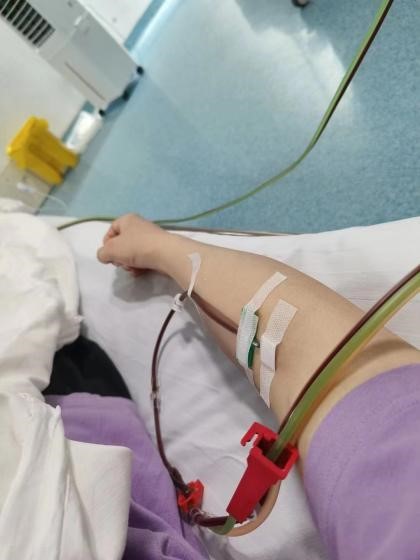胡旭正在捐献造血干细胞