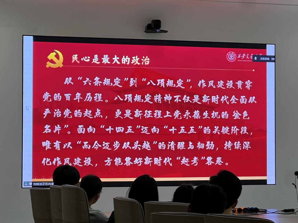学生微宣讲团成员刘婉洁以《而今迈步从头越——三个维度看中央八项规定精神》为主题,开展报告。她从“立规明志”“祛疾生肌”和“固本致远”三个维度,深入剖析了中央八项规定精神的内涵与时代意义。刘婉洁指出,展望未来,这种深刻的作风之变,必将引领中华民族伟大复兴的航程,为实现中国梦提供坚强保障。