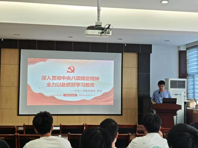 高靖植以“深入贯彻中央八项规定精神,全力以赴抓好学习教育”为题,通过理论与实际相结合带领大家分别认识了中央八项规定及其精神的意义与区别,讲述了深入贯彻“中央八项精神”的重要性和要求。他指出,在以中国式现代化全面推进强国建设、民族复兴伟业的关键时期,党中央部署开展深入贯彻中央八项规定精神学习教育,再次向全党宣示作风建设永远在路上。他还表示,深入贯彻落实中央八项规定精神要坚持从严从实,要抓责任、促落实,要抓重点、求实效,要抓机关、带系统,要坚持结合融合,要在严查严纠、同查同治、常态长效上下功夫,才能更好凝聚起万众一心推进中国式现代化的强大合力。