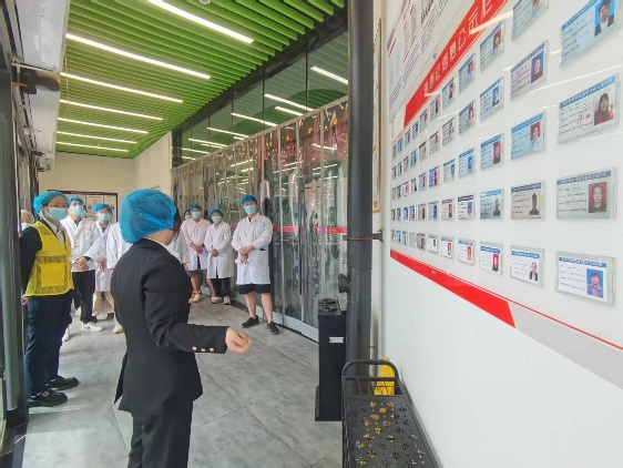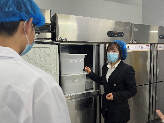 代表们在食堂管理团队引导下,严格按照规范穿戴卫生防护服,系统参观了食堂功能分区。宣传栏集中公示了“十统一”管理制度与“六到位”规范措施,并详细列出当日食材进货来源、供应商资质及检测报告,实现全流程可追溯。在验货区,工作人员讲解了专业查验制度,确保食材安全准入。