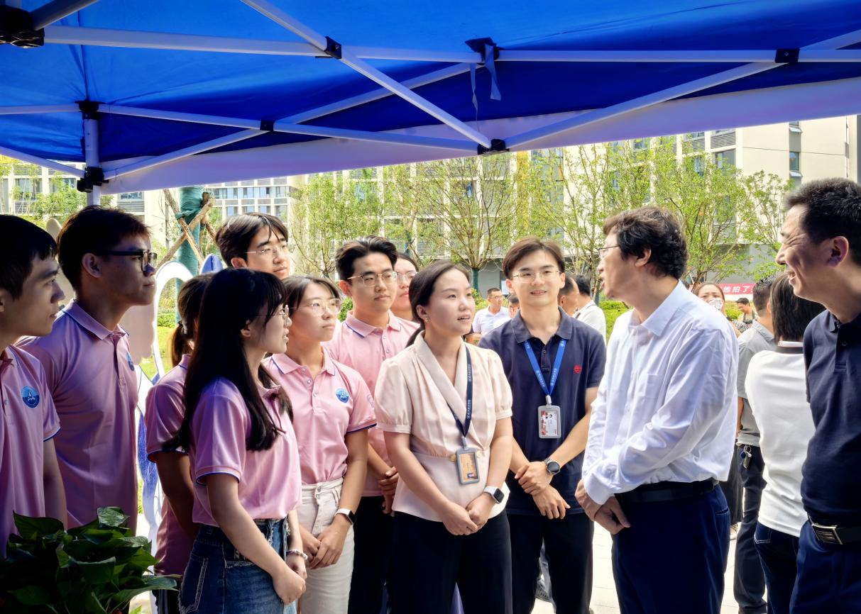 9月5日上午,校长张立群带队赴创新港检查研究生迎新工作,在畅园迎新点前,志愿者热情介绍学院自主设计的新生礼包的种类和创意。张立群校长评价学院新生礼包极具特色,并亲切慰问学院迎新志愿者,表示希望航天学院能够涌现出杰出的航天员和总师,为我国低空经济和深空探测发展贡献力量。