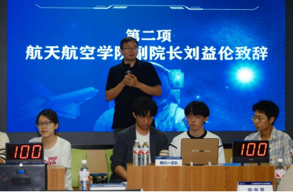 刘益伦作开场致辞。他首先代表学院感谢了有关主承办单位的支持和辛勤付出,并指出,本届赛事参与人数多、赛制流程长、组织动员有力,在繁荣校园文化、推动未来空天科技发展重要潮流方面发挥了重要作用,表达了将不懈努力将校级品牌竞赛进一步提档升级的美好愿景,鼓励同学们将兴趣热爱转化为投身“国之大者”的实践行动。