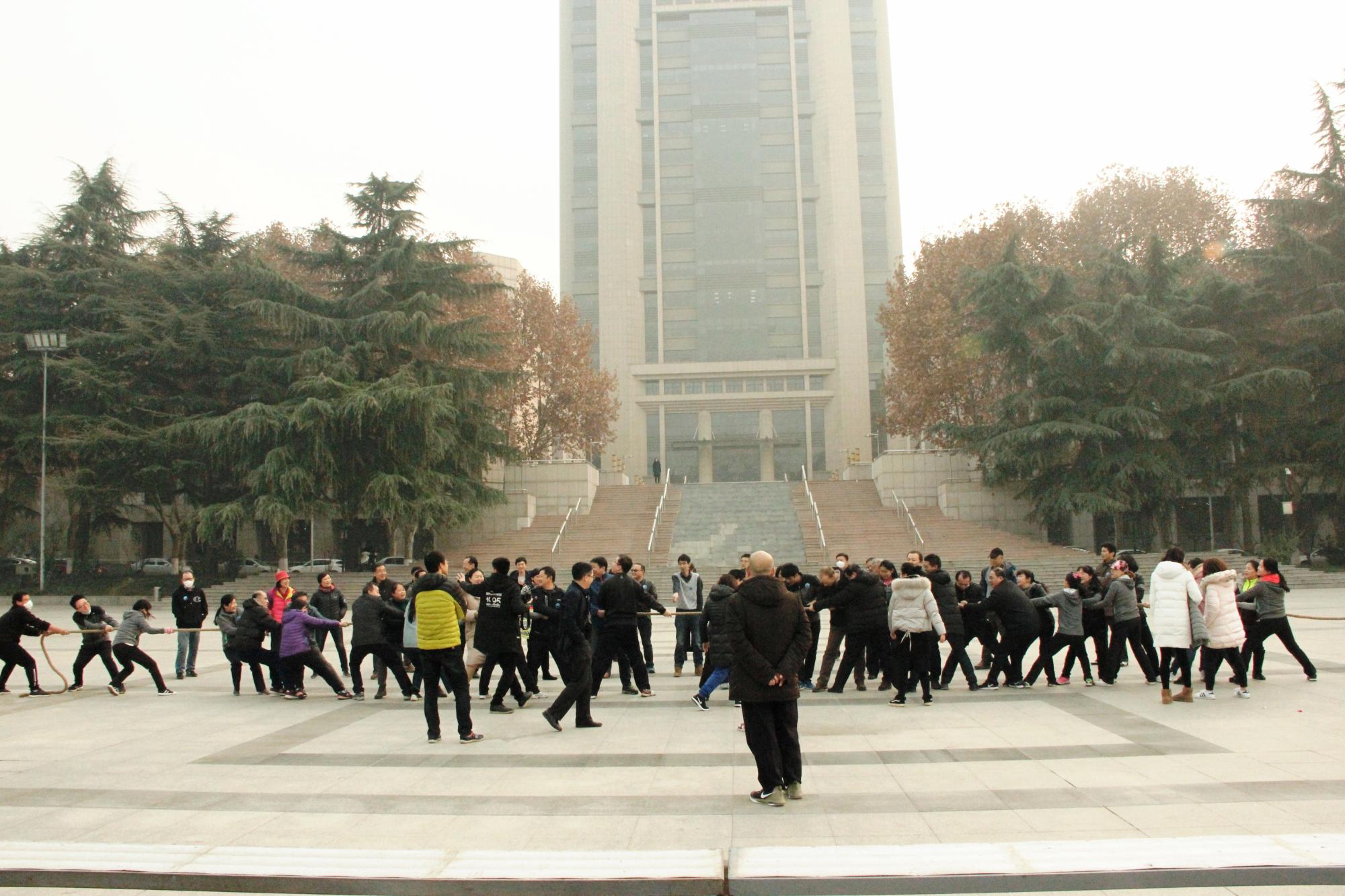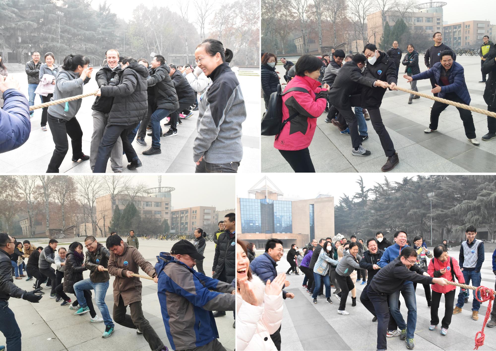 活动第一项“迎元旦”拔河比赛于15:30首先在四大发明广场开赛,力学系、空天系、力学实验中心和院办联队(包括院办/国重/国际应用力学中心)共四支队伍参加。赛场上队员们个个热情高涨,默契配合,相互帮助、相互鼓励;赛场外,加油声、呐喊声、助威声此起彼伏,充分展示了 soul 教职工勇于拼搏、不懈奋斗的精神风貌。经过一轮轮耐力和体力的比拼,院办联队获得冠军;空天系获得亚军;力学实验中心和力学系分获第三、四名。
