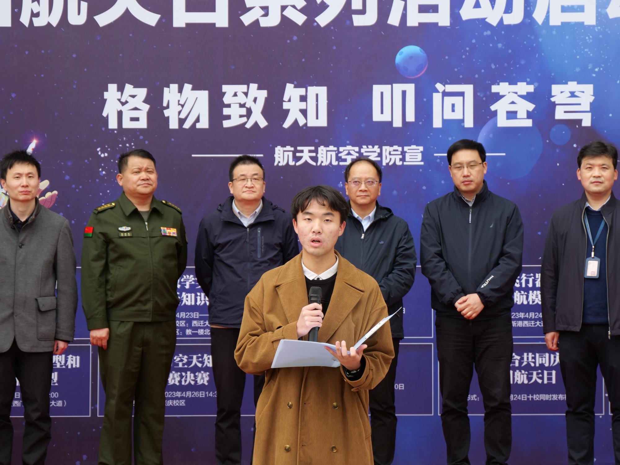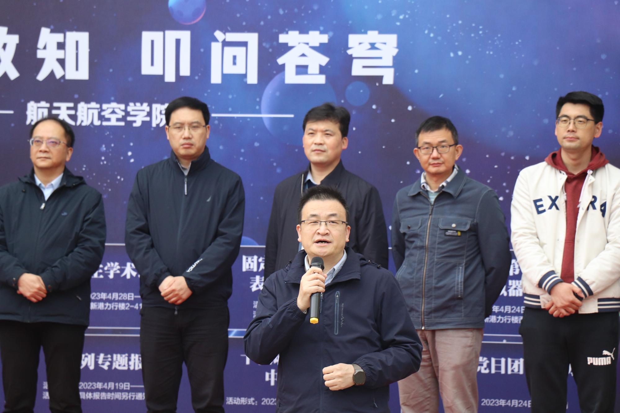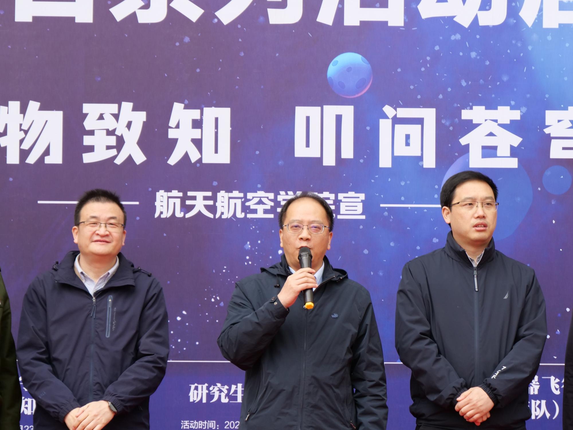柴渭副校长在讲话中指出,67年来,一代一代航天人自强不息、接续奋斗,走出了一条有中国特色的航天发展道路。“中国航天日”是激励中华儿女热爱祖国、崇尚科学,增强中华民族凝聚力和向心力的迫切需要,激励航天人以及全国的科技工作者,以航天英雄为榜样,献身航天,献身科学,不断攀登新的科学高峰,再创新的辉煌。希望航天学院要牢牢抓住教研一体、学科交叉、产教融合这一战略机遇,在新的平台上继续凝聚力量,团结一致,在服务和融入国家和区域经济社会发展中展现作为,为中国梦、航天梦的实现做出更大的贡献!