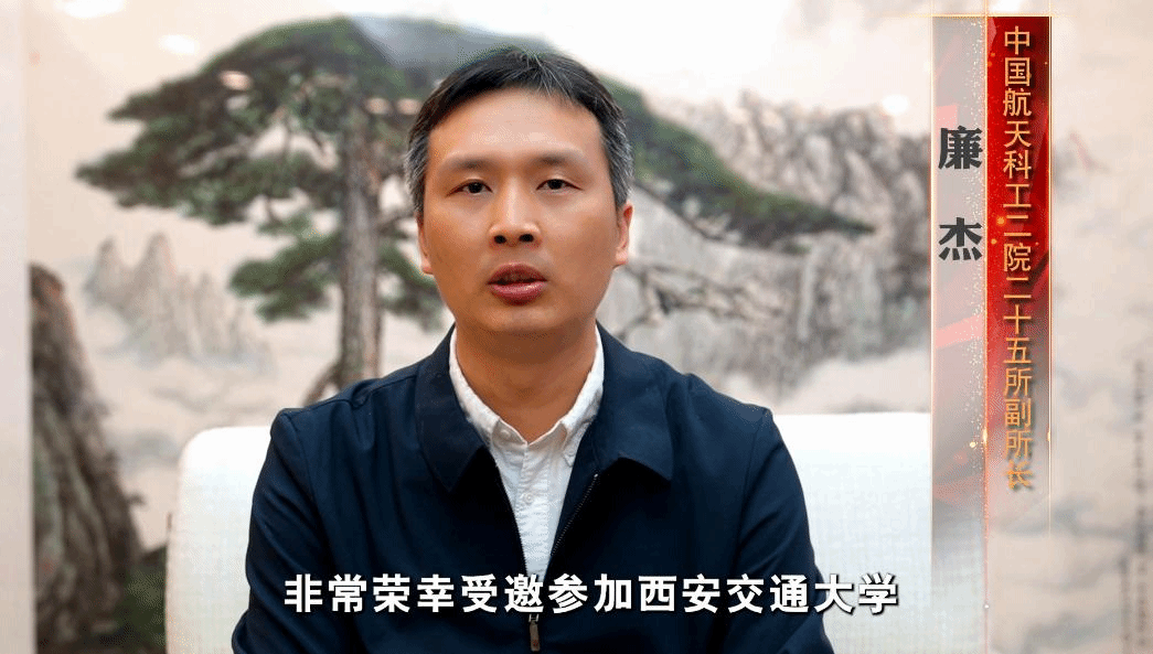 中国航天科工二院二十五所副所长廉杰通过视频致辞,他讲到在航天事业波澜壮阔的发展历程中,交大和二院有着千丝万缕的联系,共同为我国航天事业做出了不可磨灭的贡献。在交大这片沃土上,西迁精神和航天三大精神交互辉映,闪耀夺目。近年来二院和交大持续深化开展就业实践基地校企俱乐部合作,持续推进产学研各领域校企合作,希望未来有更多的交大学子,投身航天,以青春和理想践行航天梦、中国梦。