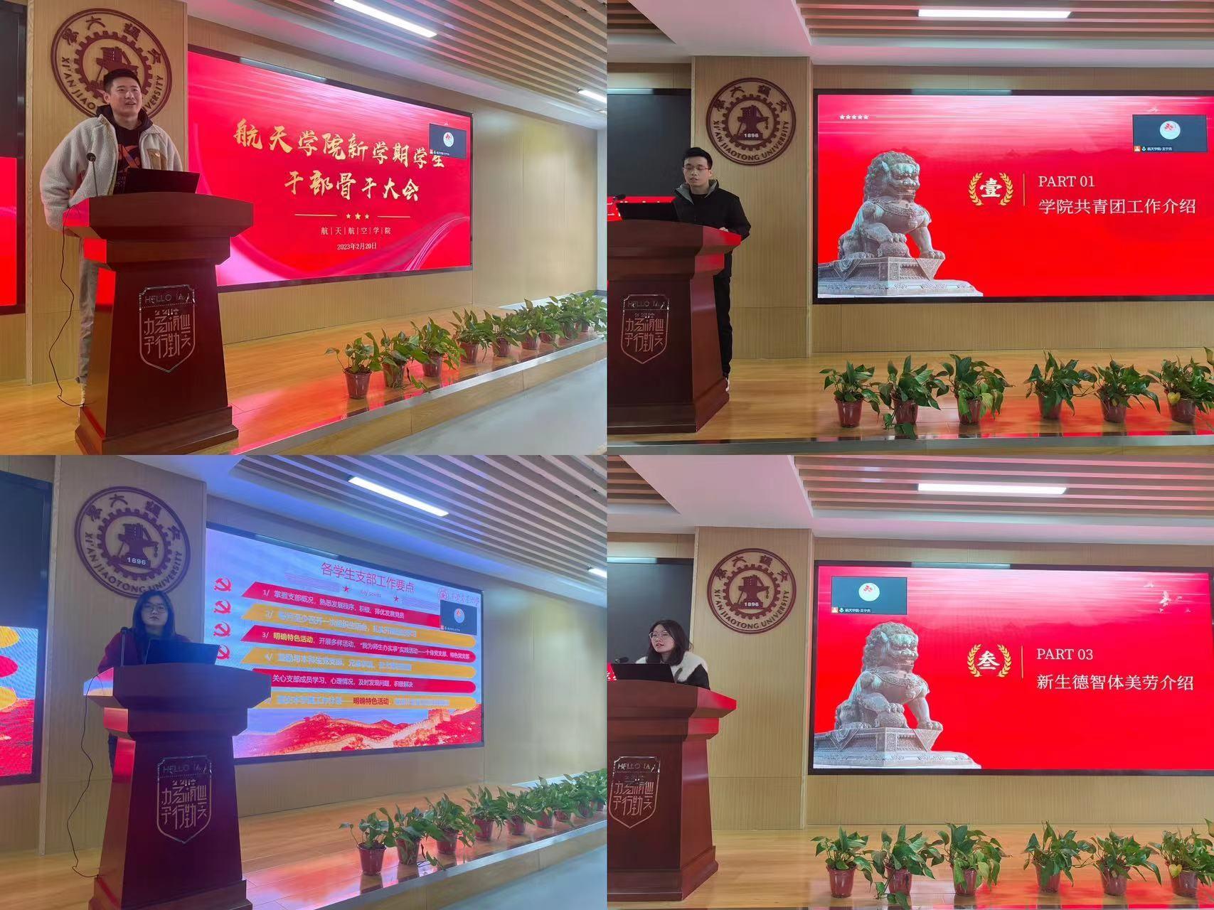 各兼职辅导员依次就各专项工作开展情况进行汇报。学院团委副书记王宁杰介绍了上一年度航天学院团学工作取得的成绩与不足,并结合校团委工作计划对本学期工作进行了安排和强调。党建专项兼职辅导员邢文思先后介绍了党员规范发展流程和本学期学院的重点特色党建活动。2022级新生兼职辅导员赵菲重点解读了学校“体美劳”研修相关政策。最后兼职辅导员王志国汇报了航天学院2023届毕业生的就业签约情况,鼓励学生干部多方位多渠道转发招聘信息,帮助困难同学完成就业择业。
