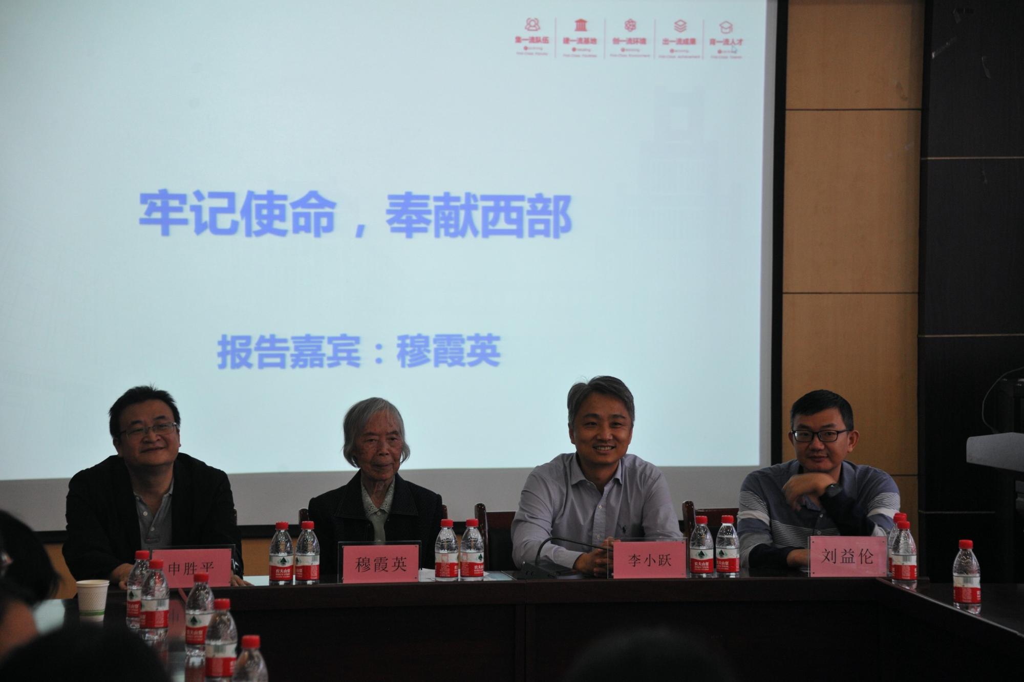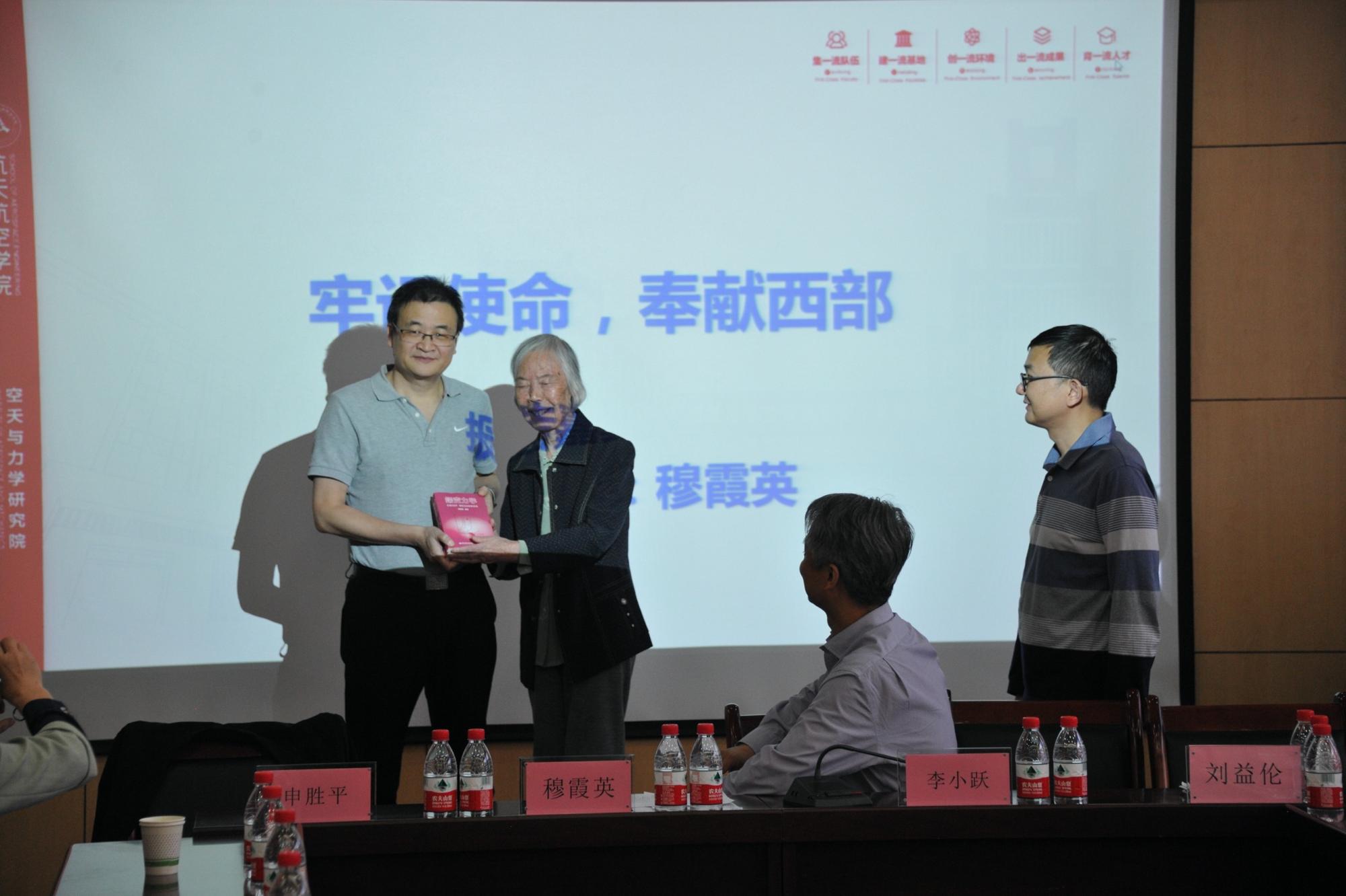 邀请,西迁老教师穆霞英教授来院做“牢记使命,奉献西部”专场报告。学院申胜平院长、李小跃书记、刘益伦副院长及青年教师、学生代表参加了此次报告会。会议由工程力学系主任徐光魁教授主持。