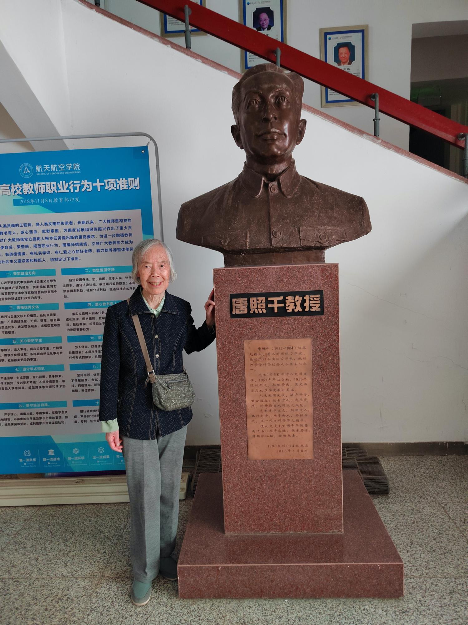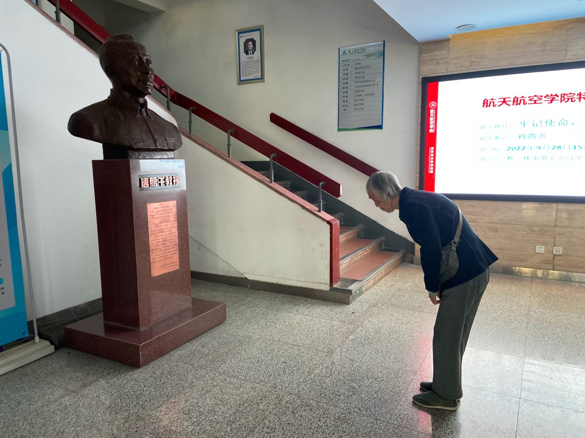 报告结束后,穆老师参观了学院一楼展厅,并向唐照千先生塑像鞠躬致敬。