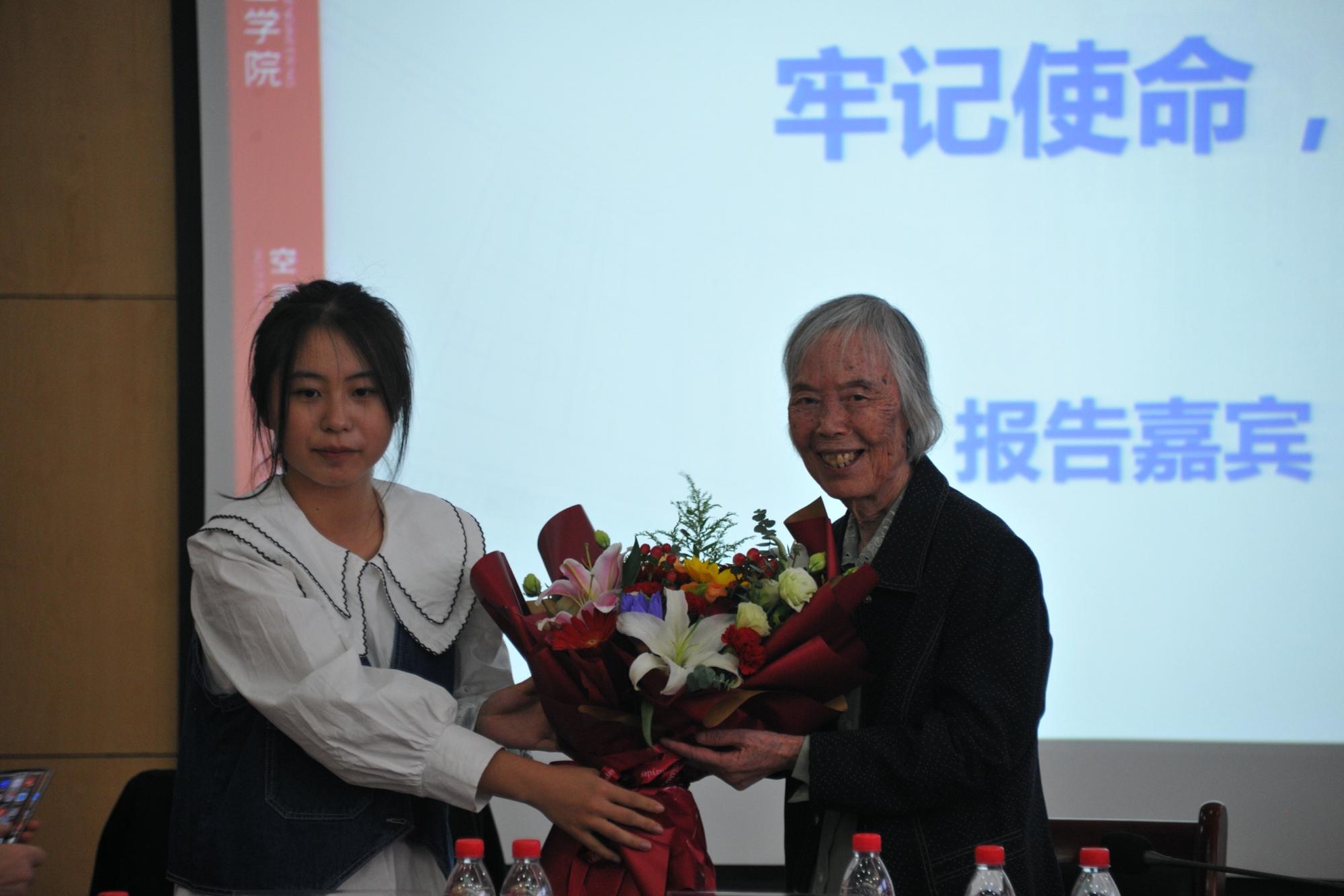 报告结束后,力学2021级学生代表张倩向穆老师敬献了鲜花。
