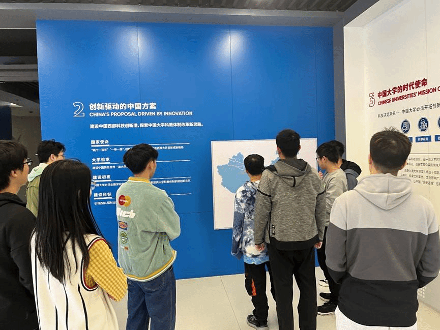 组织2022级新生赴创新港数字展厅参观学习。创新港数字展厅位于涵英楼东侧,是代表创新港科学研究、建设理念、发展进程的标志性参观地点,其中分成五个模块:“使命感召应运而生”、“国家样板全球高地”、“时代引领 大港崛起”、“创新引擎科研集群”及“扬帆致远世界之光”。通过数字展厅内文字、图片、立体视频的形式观看了交大的百年建校史和迁校史,有效提升了同学们对于学校发展历史、西迁精神以及创新港建设的理解。