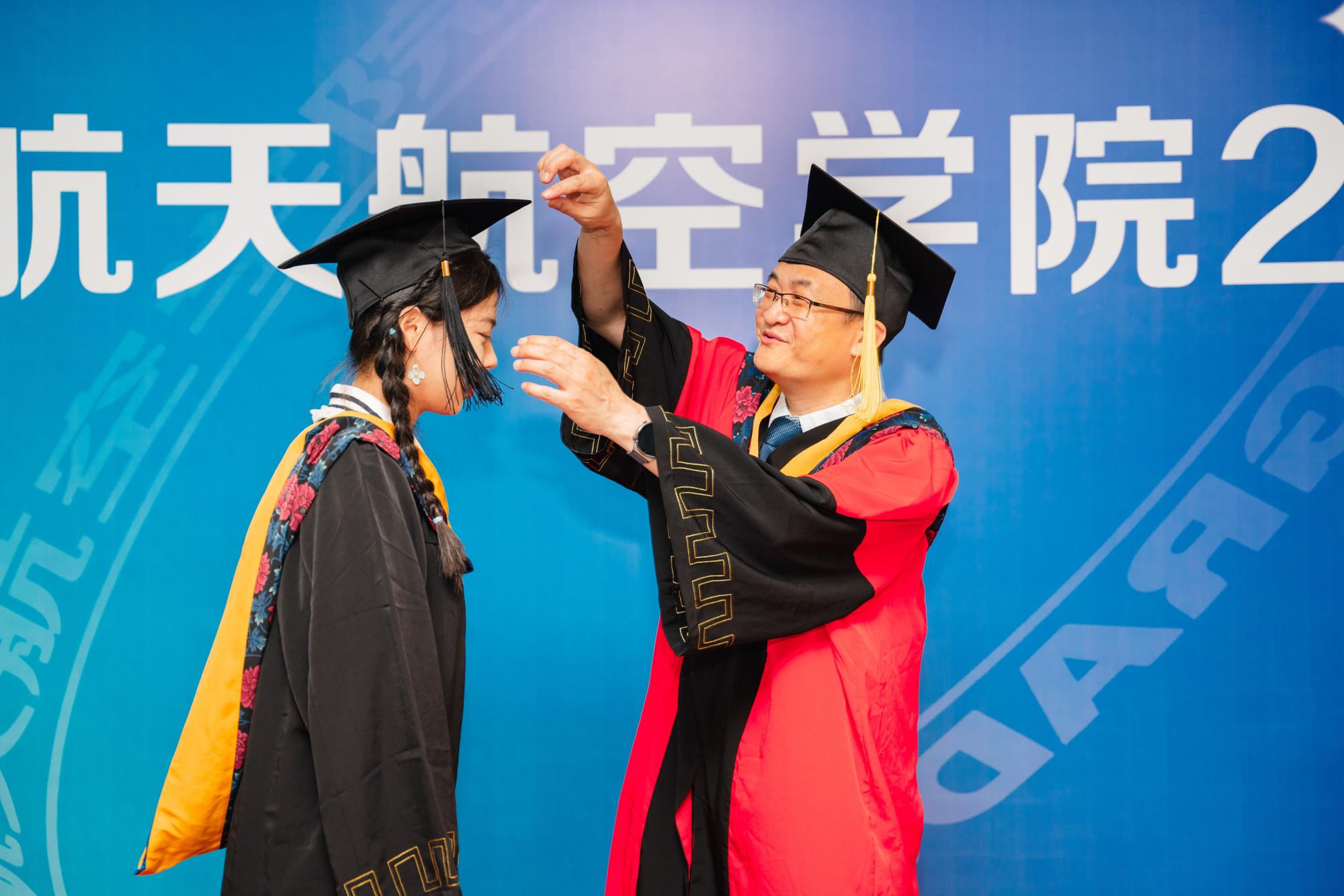 典礼最后,李小跃书记为毕业生送上临别祝福,向毕业生在疫情突袭、经济下滑等严峻形势下,顺利完成学业、找到心仪工作表示祝贺,并谈到:一朝航院人,一生航院情。衷心希望同学们在未来的日子里既志存高远,又脚踏实地,把与祖国血浓于水、与人民同呼吸共命运的情感贯穿学业全过程,融入事业追求之中。学院永远是同学们避风的港湾,祝大家成功、幸福。