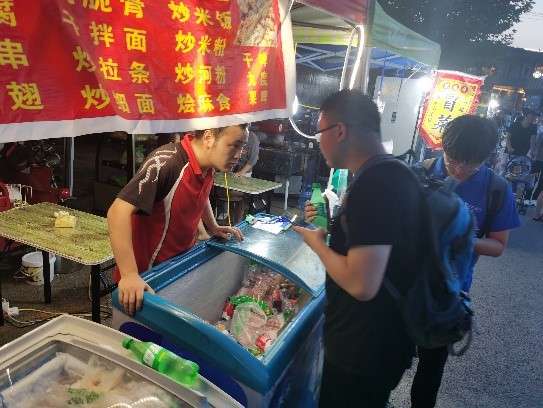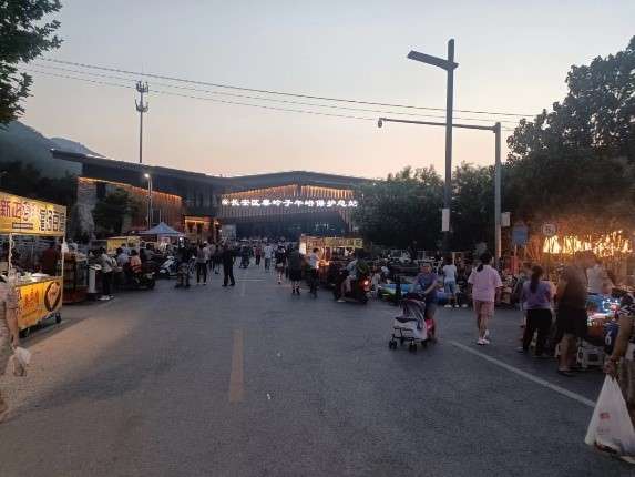 下山时已接近黄昏,山脚下各式各样的摊位林立,队员们与不同的商贩进行了简单的沟通,发现近几年政府对这些移动商贩的支持力度在逐渐增加,并出台了相关政策,使各商贩的经营更加规范化。当谈及疫情的影响时,其中一位小哥告诉我们,疫情以来,游客数量大概只有原来的三分之一,这对于他们这些商贩而言是不小的打击。尽管如此,小哥还是笑着说:“生活是要继续的,总会有办法渡过难关。”中国人民的乐观与坚韧在此刻体现得淋漓尽致。