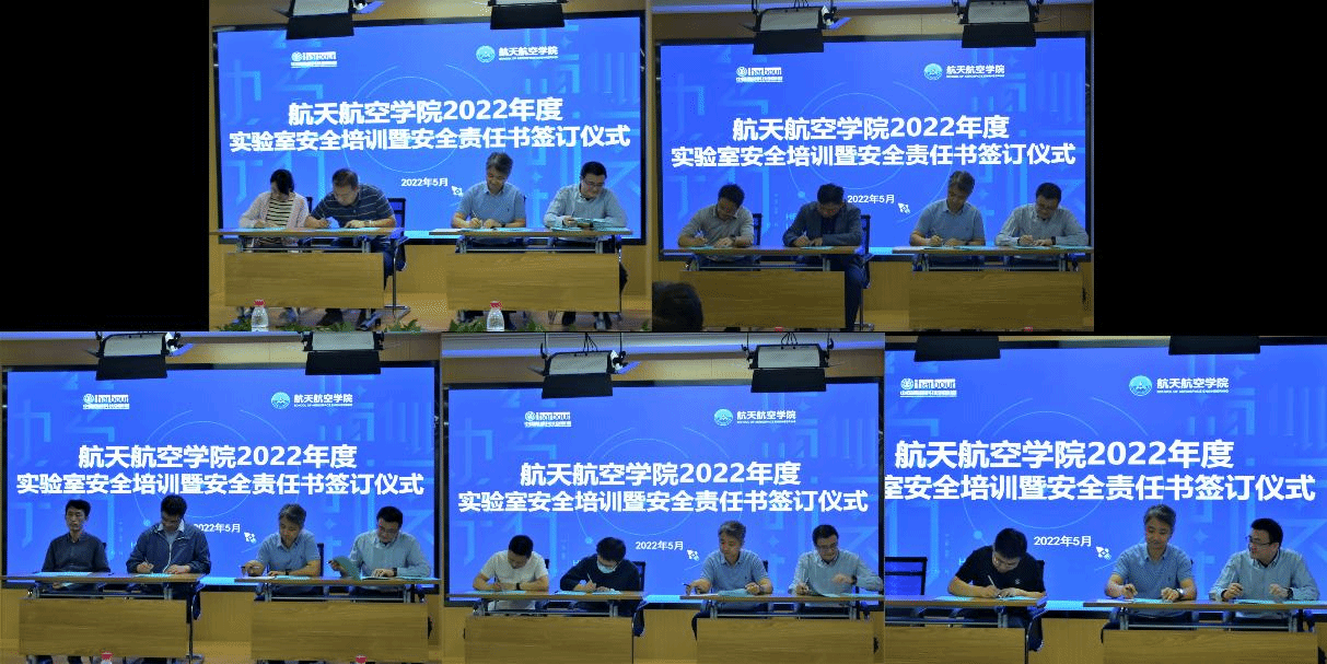 为进一步增强学院实验室安全管理能力和水平,保障师生生命安全和校园安全稳定。5月19日上午,航天学院于创新港2-4195会议室举行了2022年度实验室安全培训暨安全责任书签订仪式。学院申胜平院长、李小跃书记,各系、室、中心、科研平台安全负责人及学院两百余名师生参加会议。本次培训由团工委书记李昱静主持。