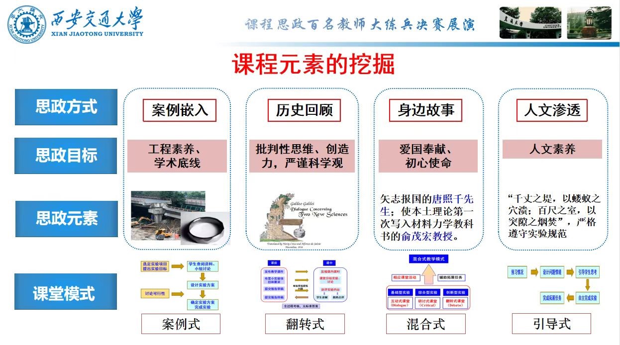 航天学院徐志敏老师的《基础力学实验》课程荣获特等奖。徐志敏老师结合力学学科及基础力学实验课程特点,从课程目标凝练、思政元素挖掘以及教学设计三个方面开展基础力学实验课程思政探索与实践。坚持“言传身教是最好的思政教育”,严格要求自己、规范培养人才。通过案例嵌入、历史回顾、身边故事、人文渗透等方式,思政元素融入如春风化雨,价值观念传递润物无声,聚焦培养学生家国情怀、职业道德和工程素养、思辨能力和创造能力,培植理想信念,实现价值塑造。