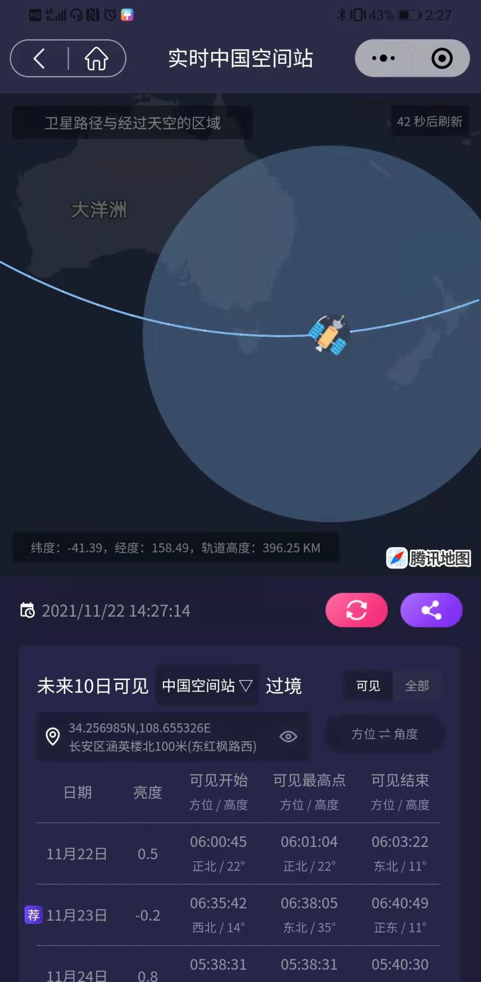 11月19日,新华社发布《全球拍天宫丨你拍了拍天宫王亚平拍了拍你》一文,文中分享了北京、天津、西安、郑州、鄂尔多斯等多地摄影爱好者拍到中国空间站过境的照片,其中,中国空间站飞过中国西部科技创新港的照片由 soul